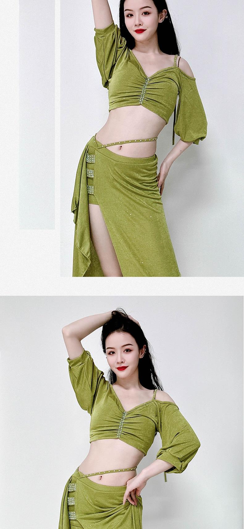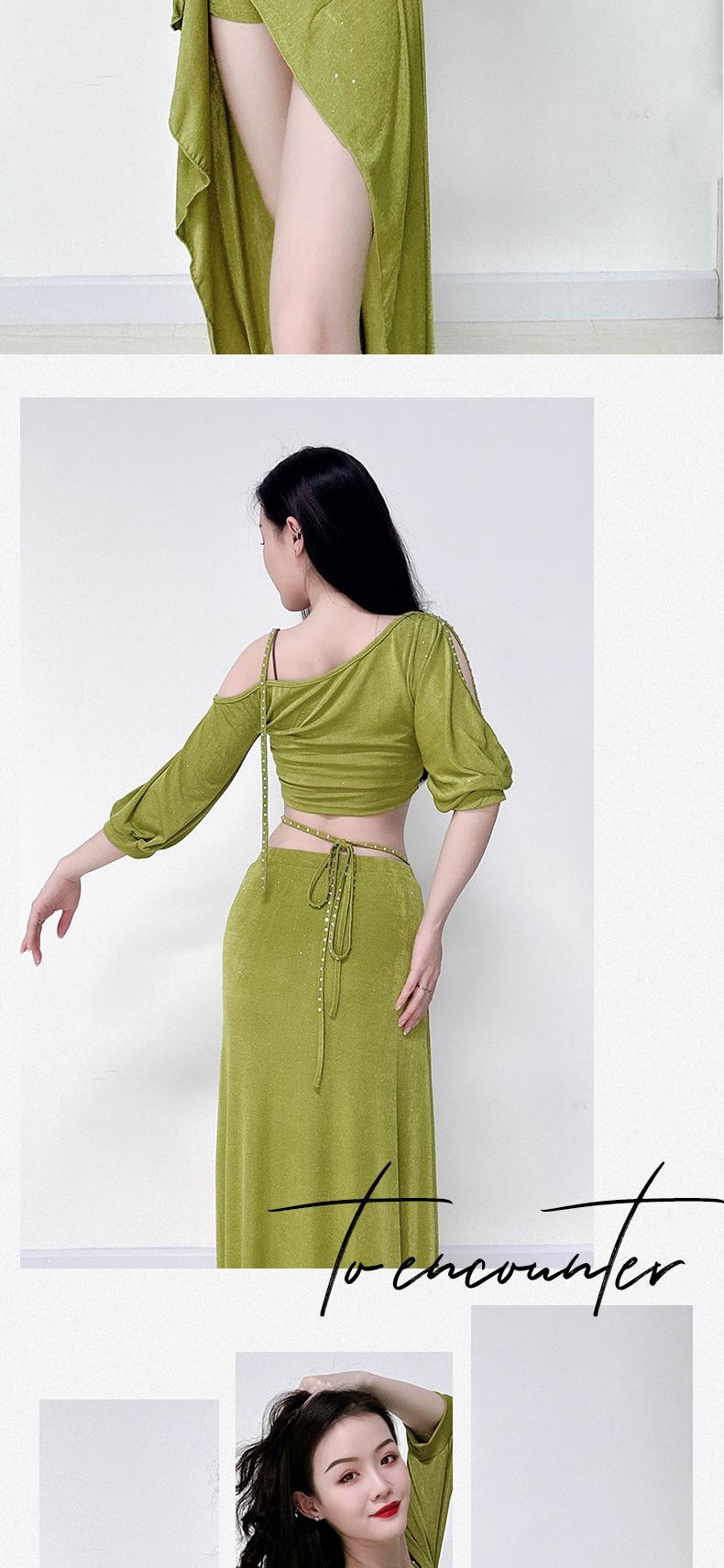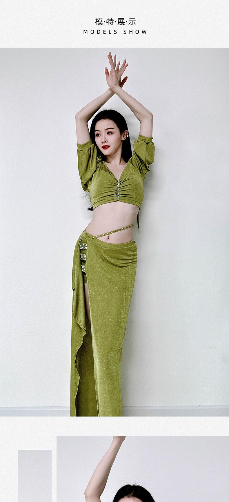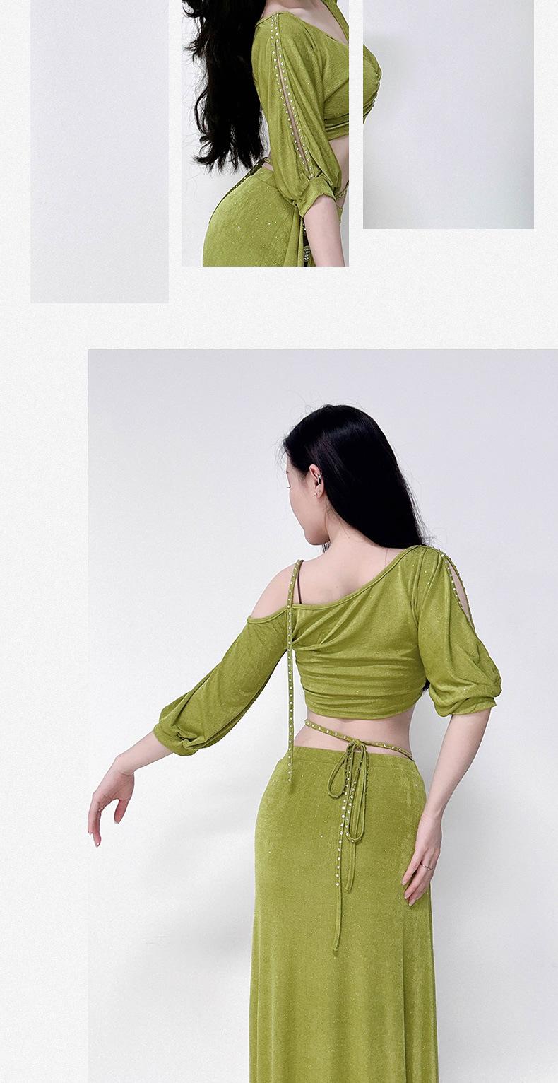Roupa de prática de dança do ventre leve e luxuosa para dança do ventre, traje para dança oriental, temperamento de dança, manga média, iniciante 5060