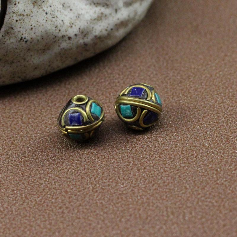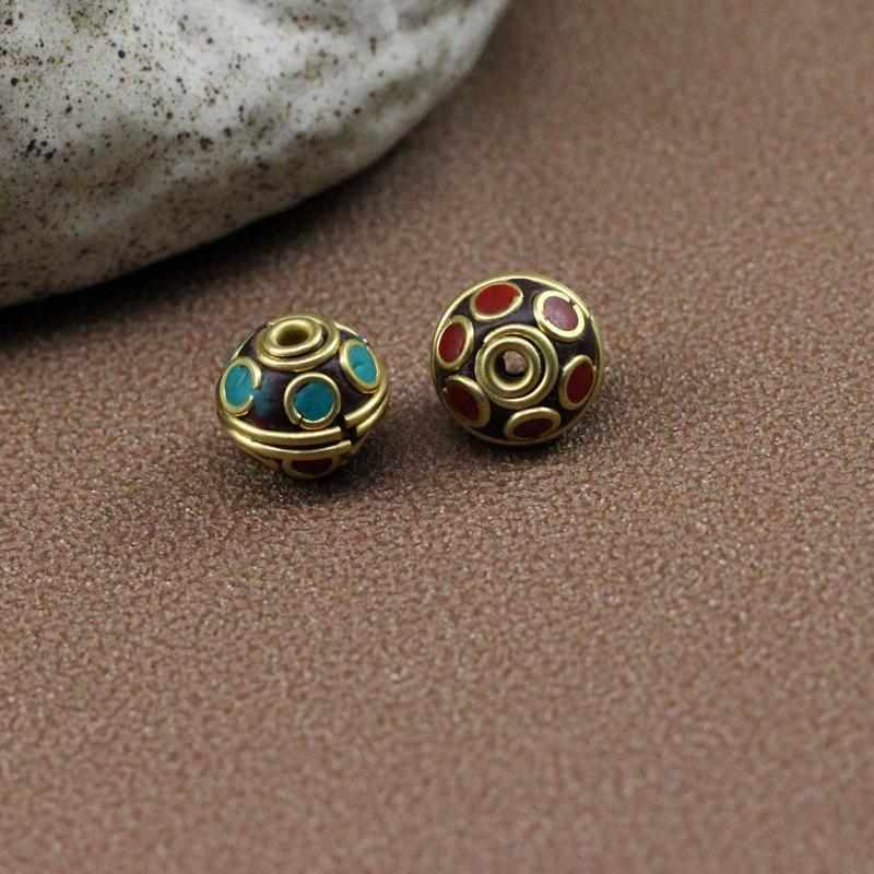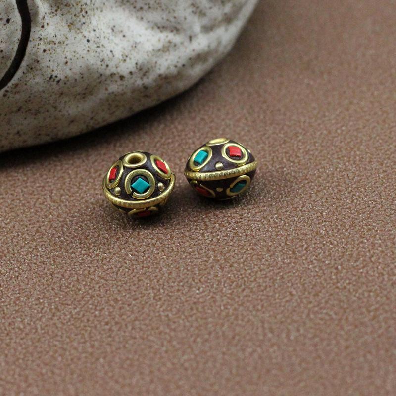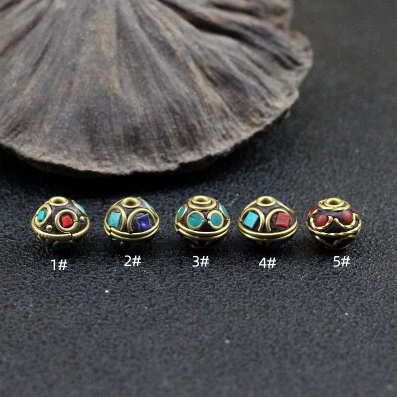 | Nome do produto: Contas incrustadas de latão, contas espaçadoras de pires voador retrô feitas à mão em estilo nepalês, pulseira de ágata de cristal, contas étnicas |