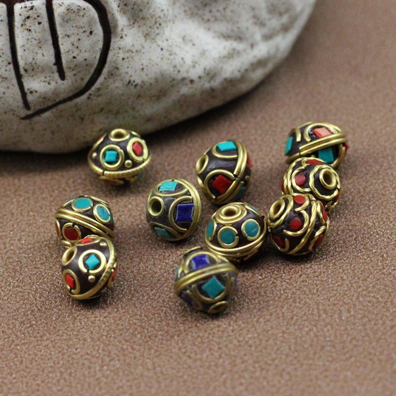| usar:Usado para vários acessórios de chaveiro artesanais, pulseiras, acessórios de contas. Vários acessórios artesanais. Acessórios trançados de corda vermelha para o ano de nascimento. Faça pulseiras, colares, acessórios, etc. Descrição do produto:Contas de cobre feitas à mão em estilo nepalês são atualmente um elemento de moda popular, adequadas para todos os tipos de ocasiões casuais. Elas são clássicas e elegantes e são adequadas para todos os tipos de acessórios.As contas de cobre do Nepal são adequadas para qualquer joia, pulseira e colar feitos à mão. As contas de cobre feitas à mão no estilo Nepal são incrustadas à mão e formadas por filigrana. A superfície é irregular e a aparência não é muito regular. Cada conta é diferente, então o tamanho não pode ser unificado e haverá alguns erros. O diâmetro do furo não é particularmente correto, e as pequenas pedras contidas são partículas aleatórias de cascalho. Após a moagem e o polimento, a cor é mais escura. É deliberadamente feito no estilo de contas antigas, não um defeito. É especialmente adequado como um enfeite para pulseiras.