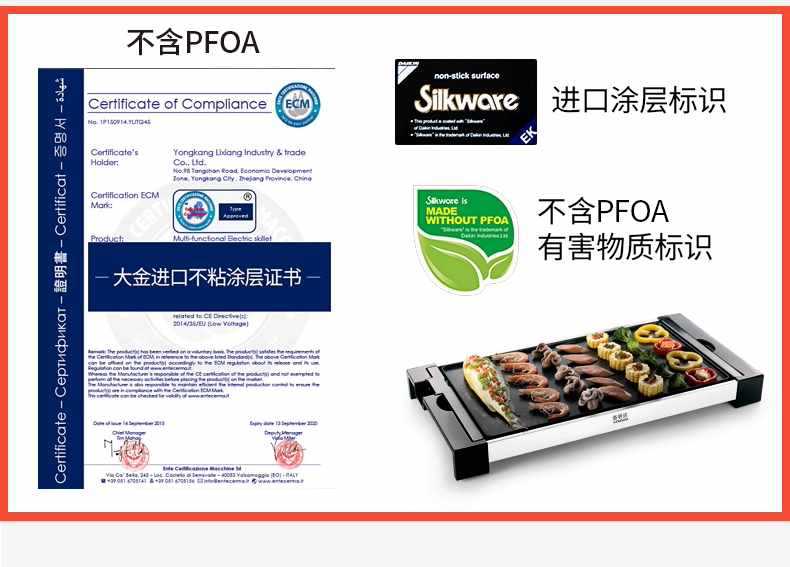 Especificações da grelha/panela