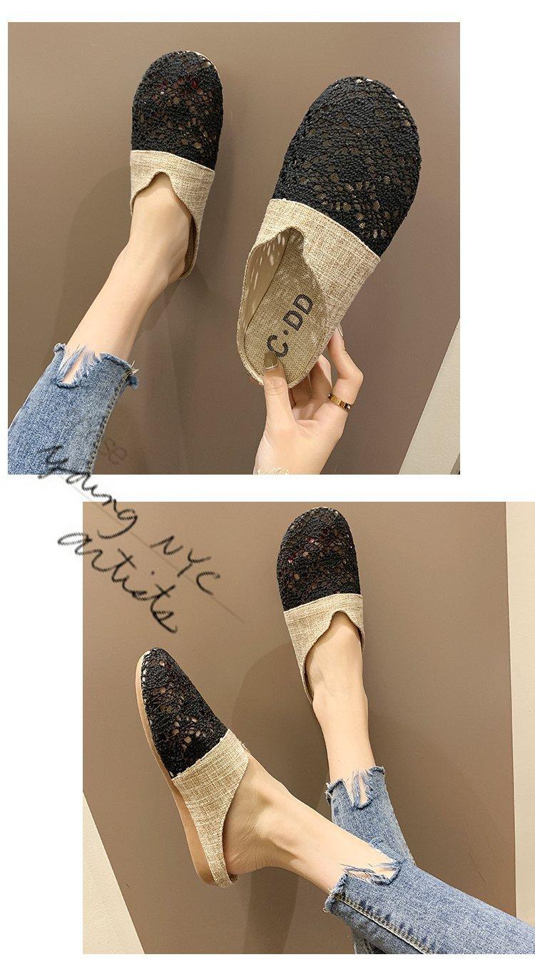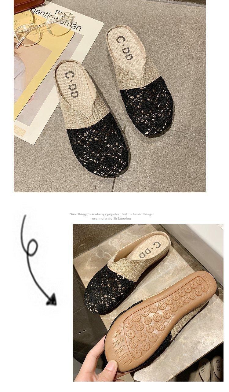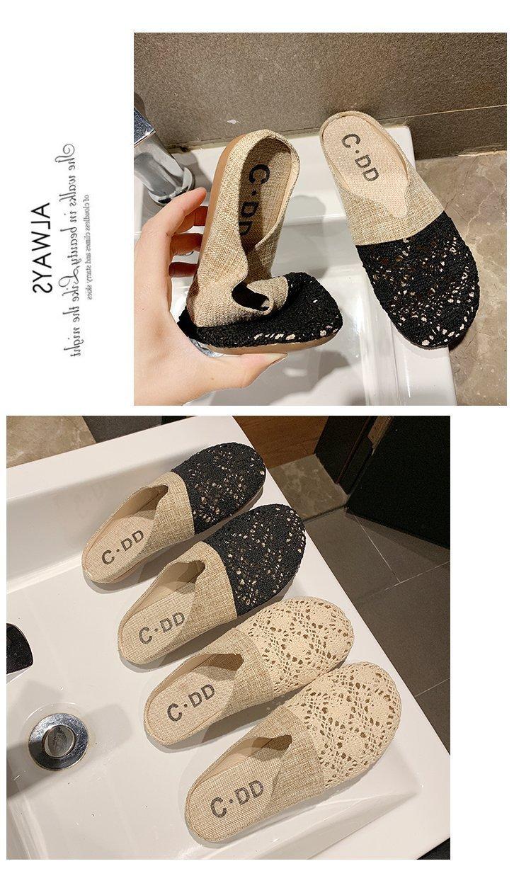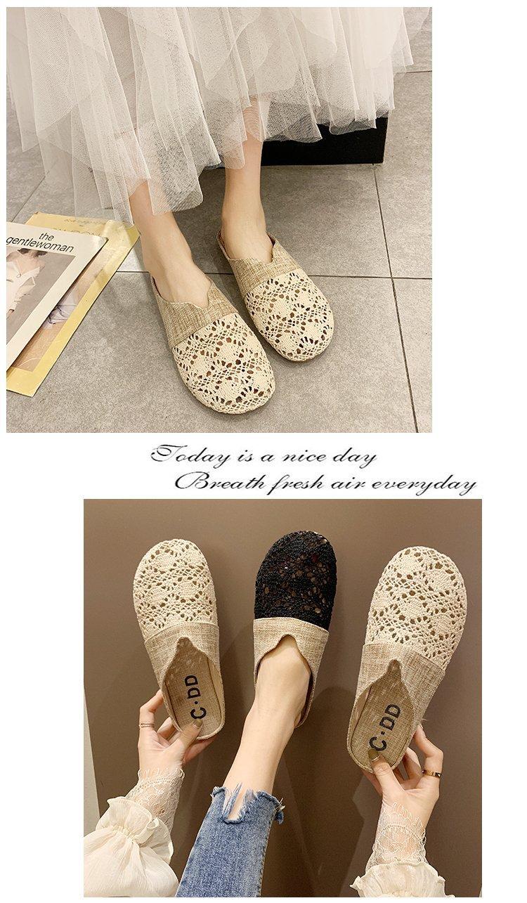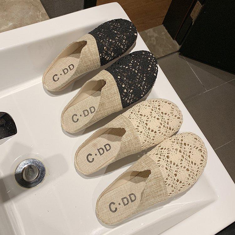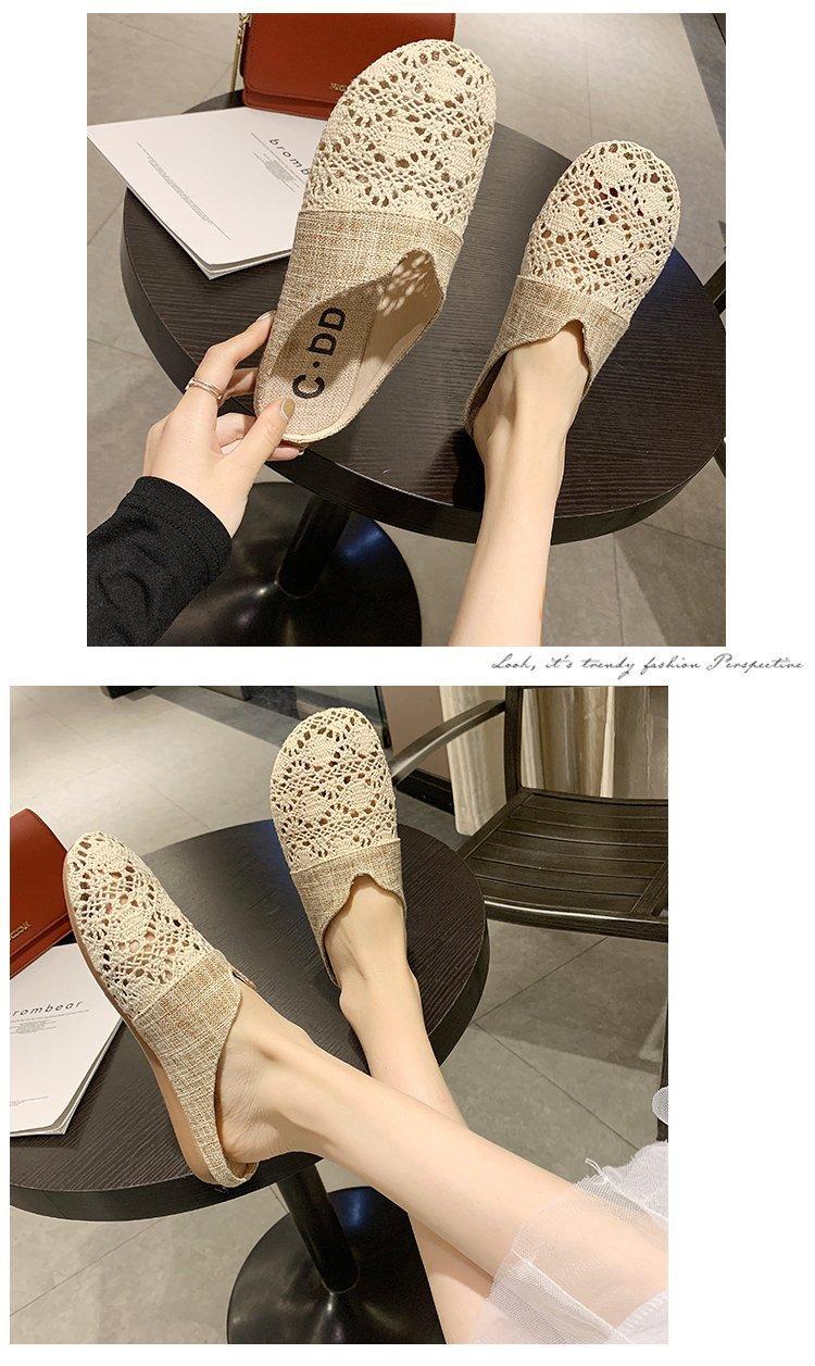 Chinelos de verão para novas mulheres Chinelos de fundo plano de malha respirável para mulheres de tamanho grande Chinelos femininos de comércio exterior por atacado