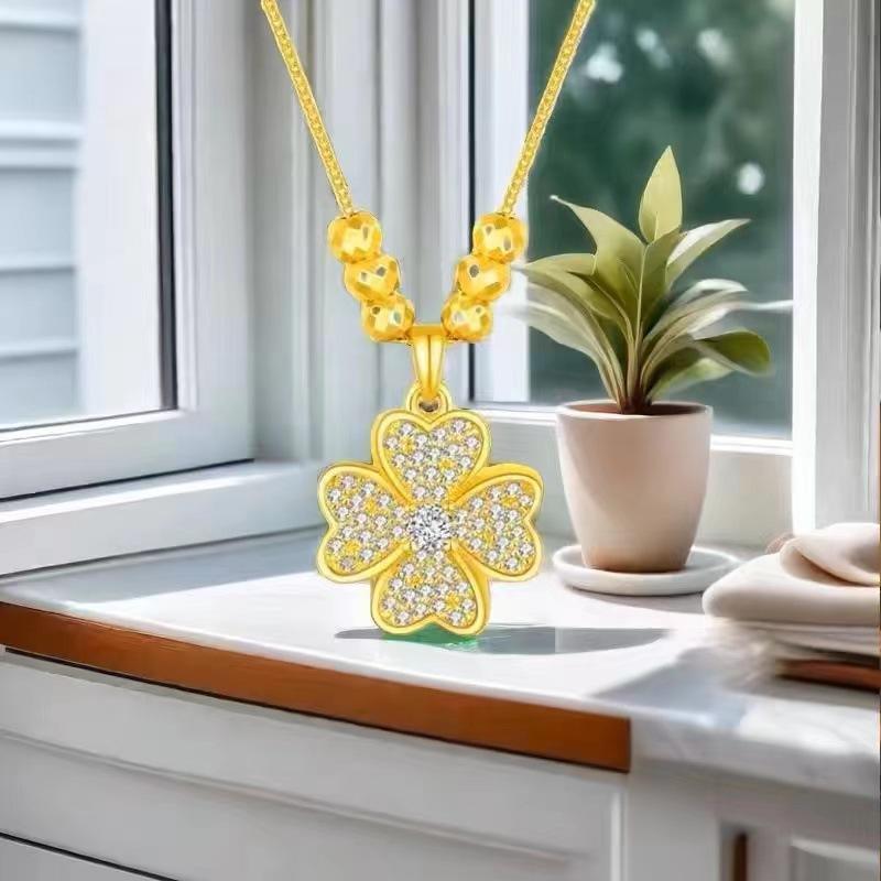 Four-leaf clover necklace, Transshipment bead four-leaf clover necklace