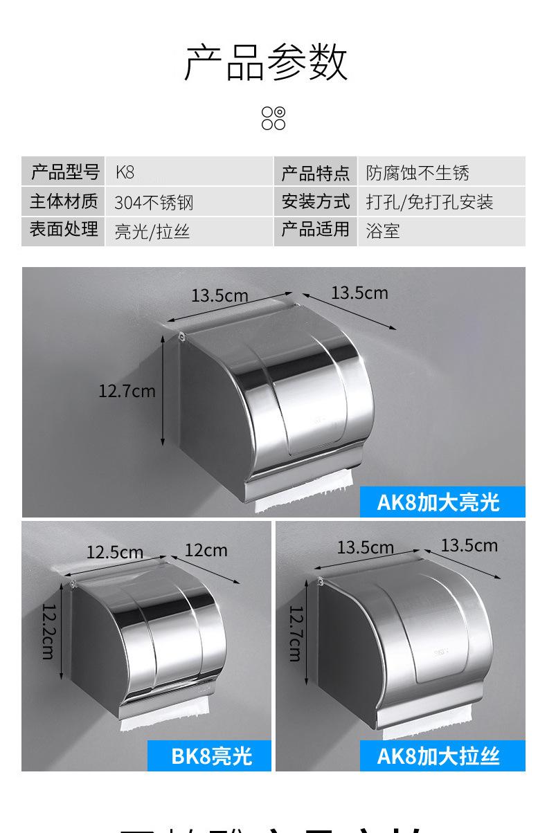 Porta Papel Higiênico Banheiro de Hotel À Prova D'água Caixa de Papel em Rolo Banheiro Aço Inoxidável 304 Porta Toalha de Papel Sem Furos Toalha de Papel Novo Produto