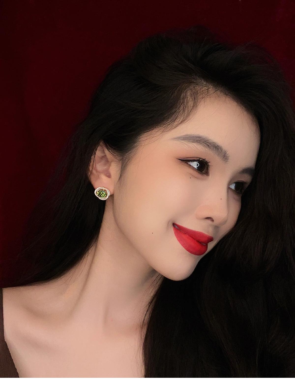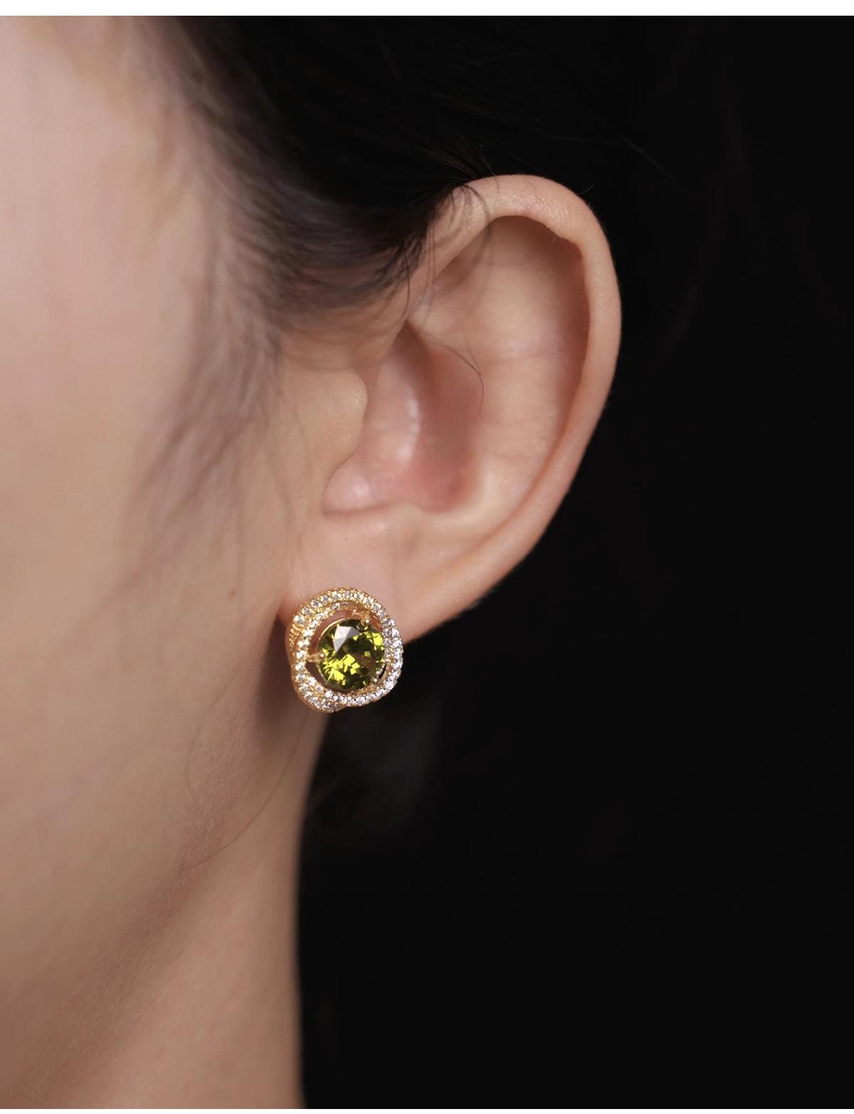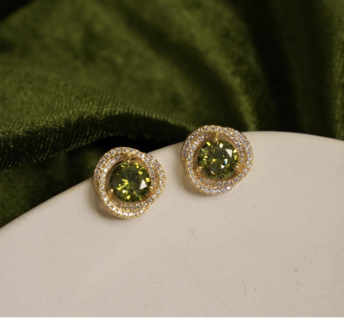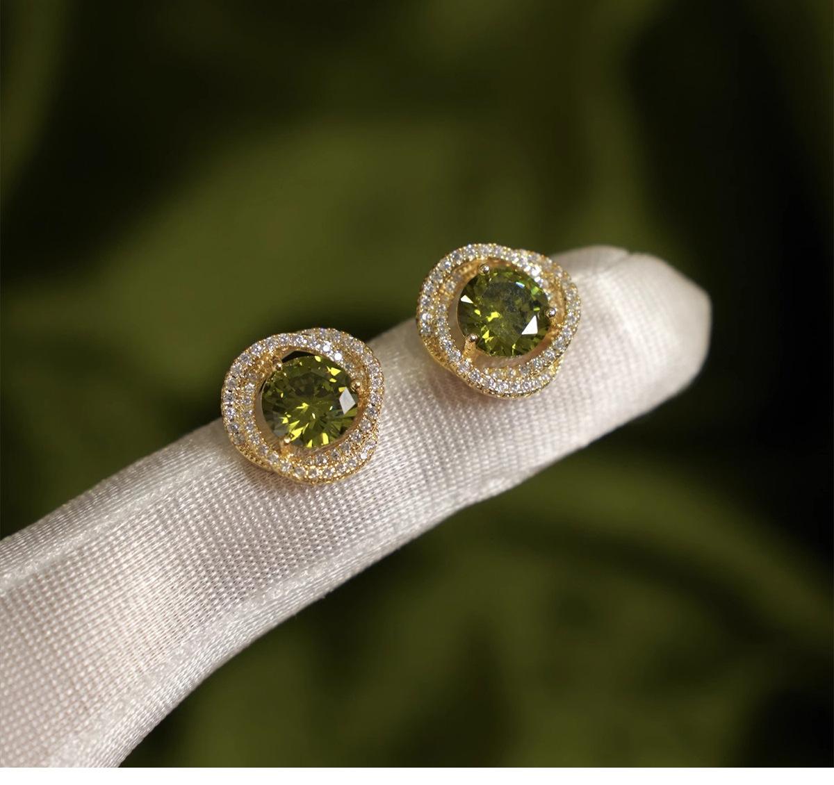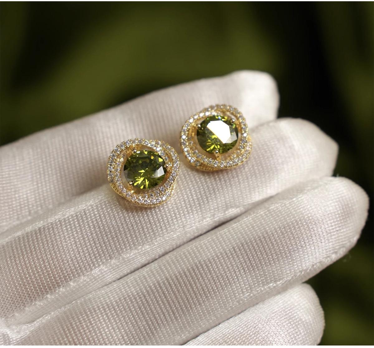 Brincos de pino verde oliva retrô francês brilhantes, brincos de cristal esmeralda simples de luxo leve para mulheres, brincos de design avançado