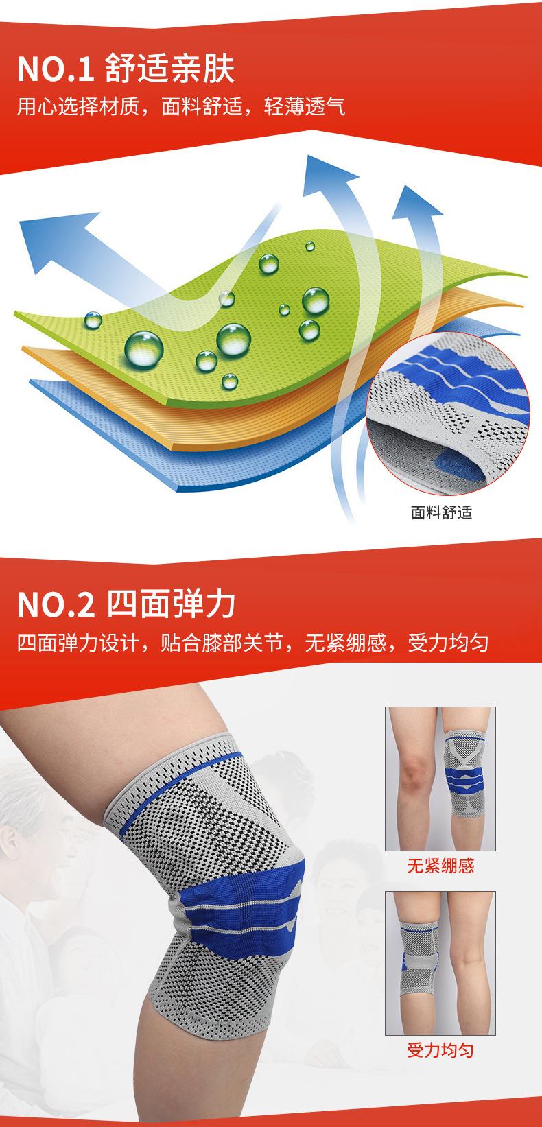Joelheiras de suporte de mola esportiva Joelheiras quentes Respirável Absorção de suor Basquete Ciclismo Montanhismo Fitness Joelheiras de silicone