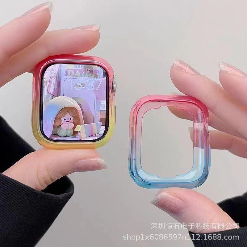 Caixa de Relógio Transparente com Gradiente Adequada para Apple Smart Watch iWatch Capa Protetora Caixa de Relógio Tpu Bicolor Atacado