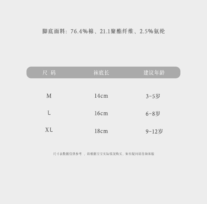 M is suitable for 3-5 years old (sock sole length 14cm), L is suitable for 6-8 years old (sock sole length 16c...
