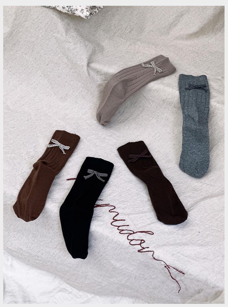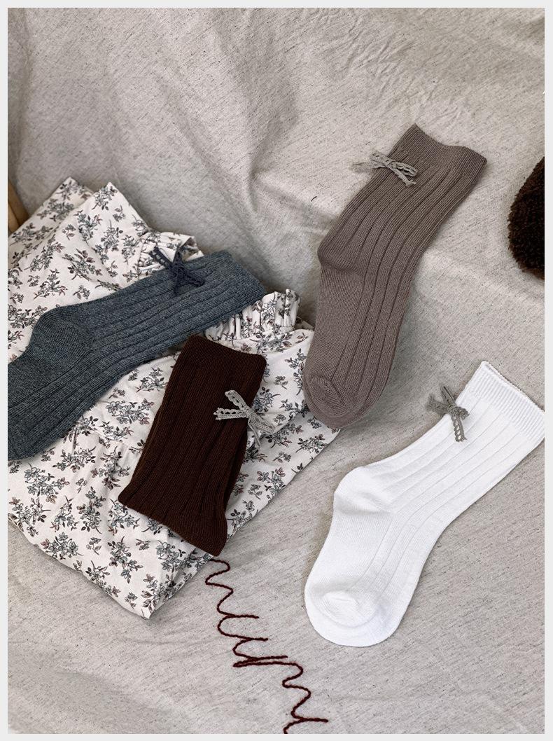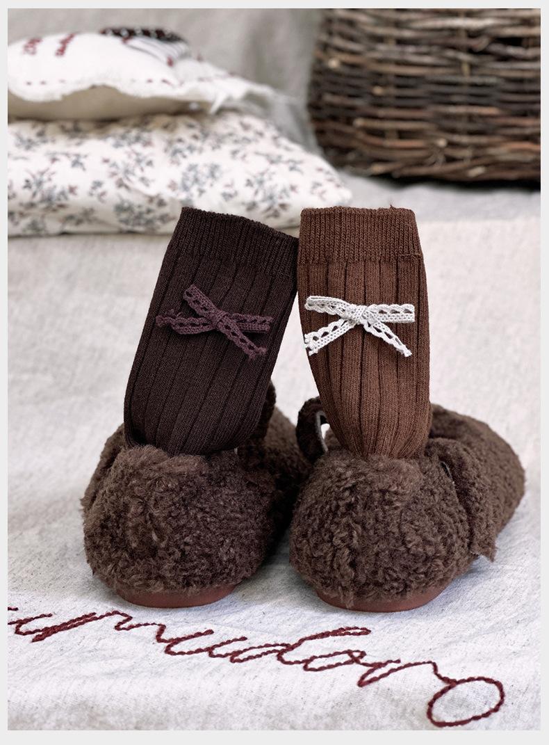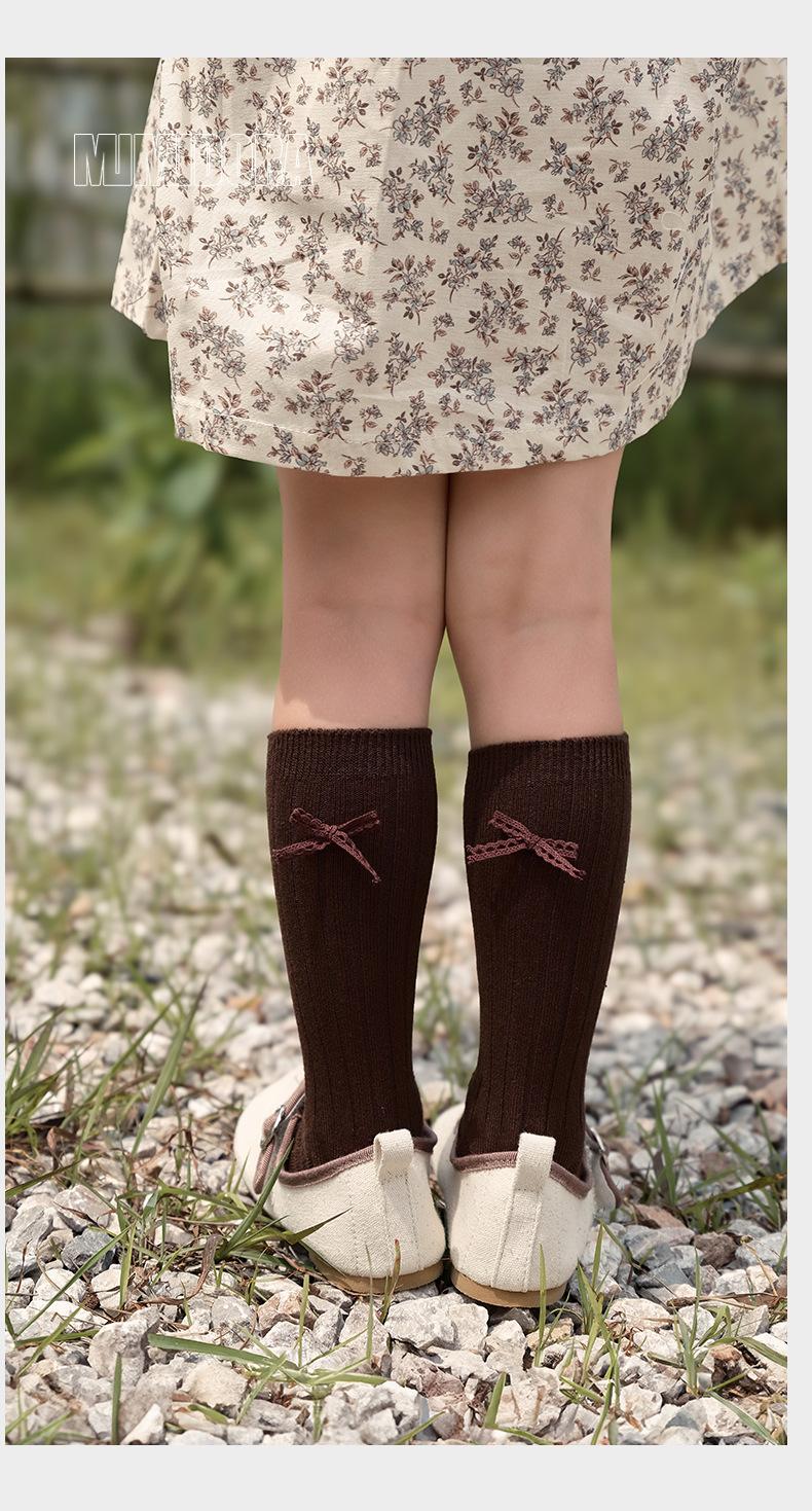 Meias para meninas Primavera e Outono Meias de tubo médio para crianças Estilo coreano Bowknot de estilo estrangeiro Meias rasas do bebê feminino Meias de algodão de outono desossado