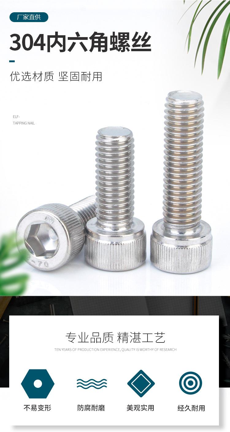 Parafusos e Porcas de Aço Inoxidável 304 com Soquete Sextavado Din912 Estendido Cabeça Cilíndrica com Recartilho M4M5M6