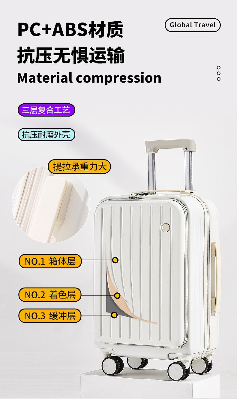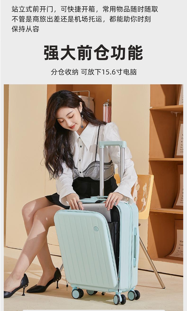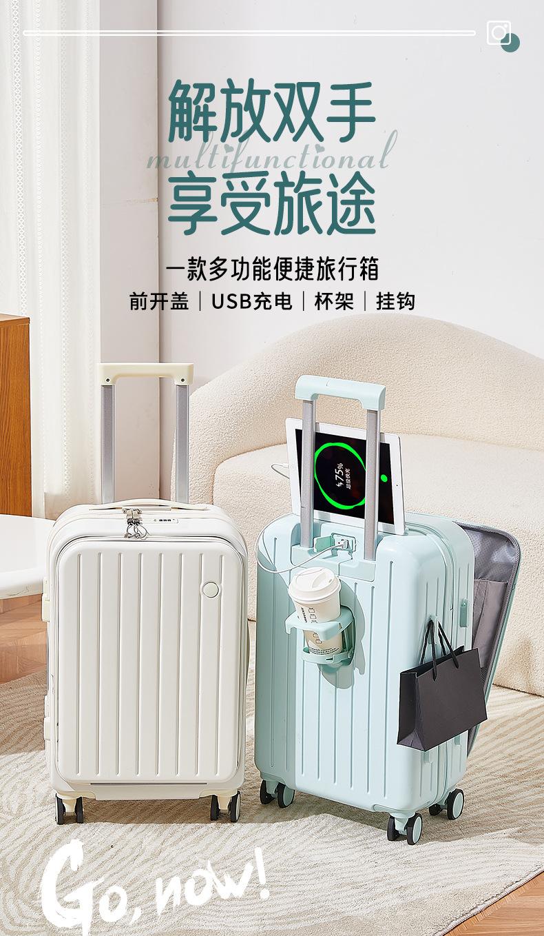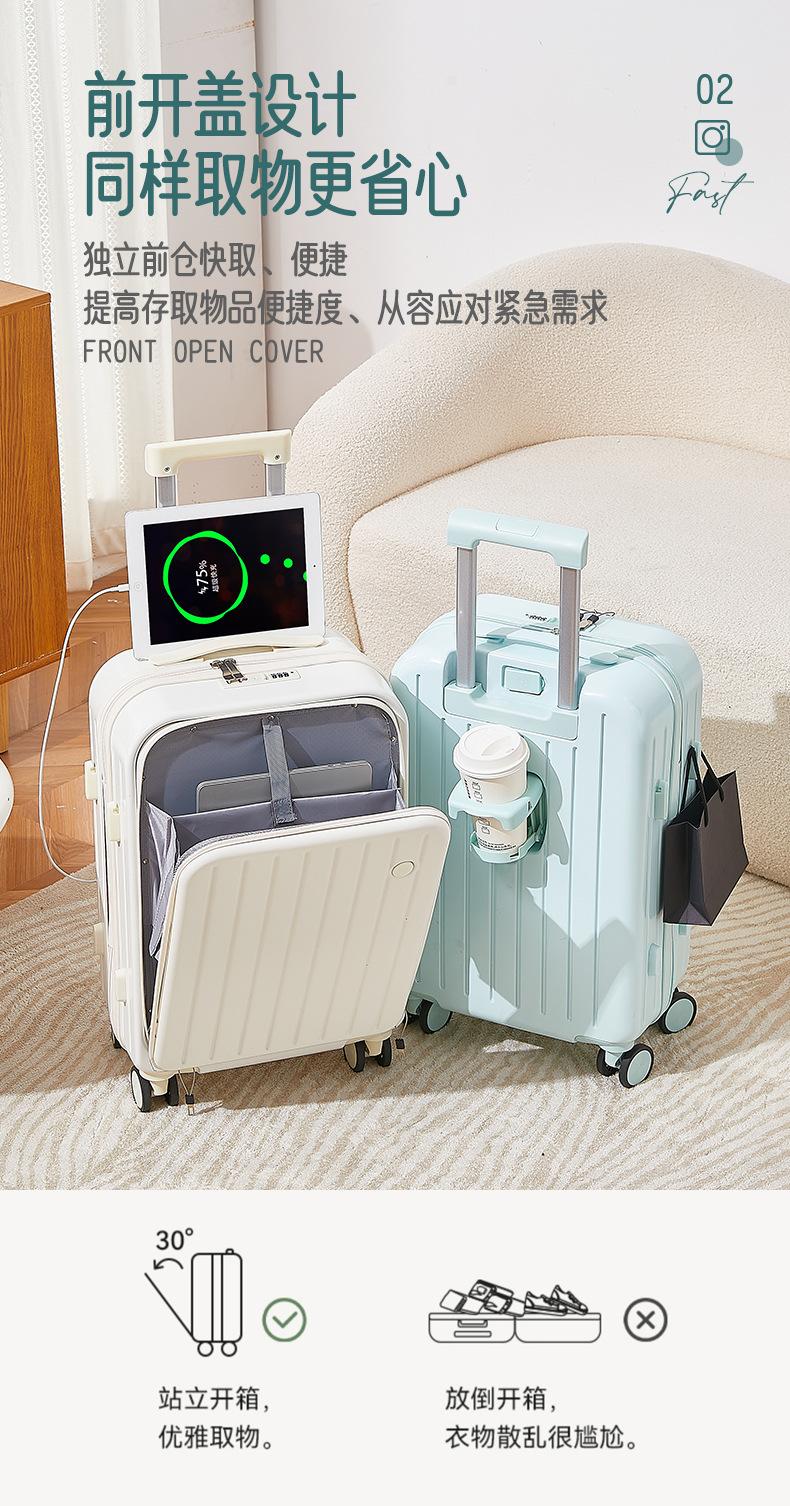 Mala de bagagem de abertura frontal feminina nova 2023 multifuncional recarregável de 24 polegadas mala de mão masculina com senha