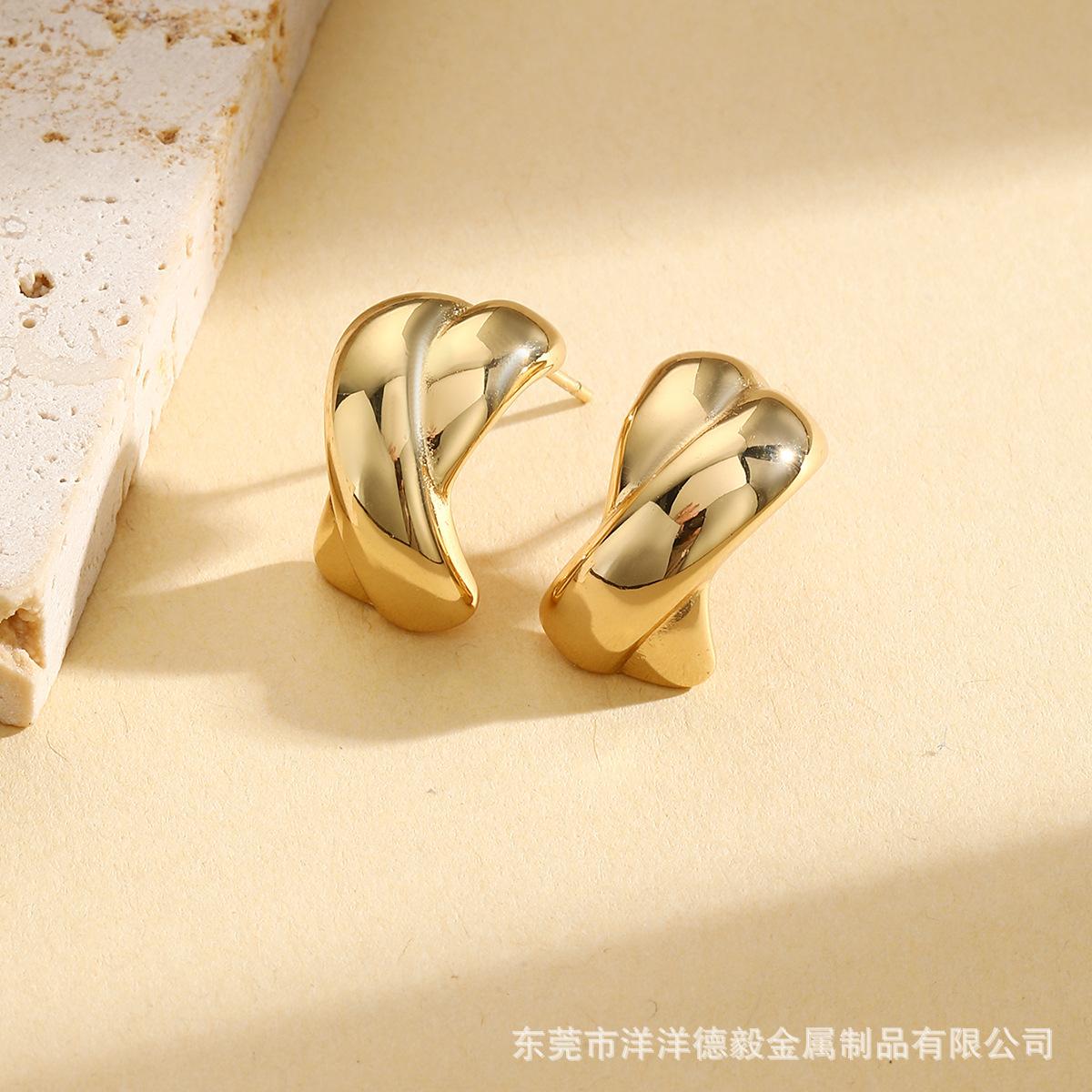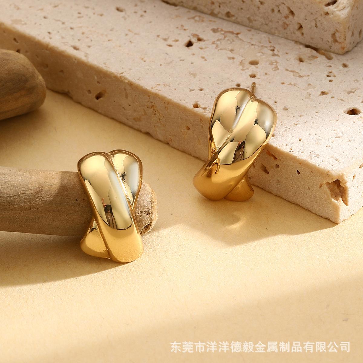 Moda cross-border best-seller simples nicho design brincos de metal temperamento high-end brincos de aço inoxidável atacado
