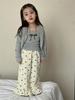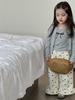 Outono 2024 novas roupas infantis coreanas roupas infantis meninas arco suspensório cardigã terno infantil de 2 peças