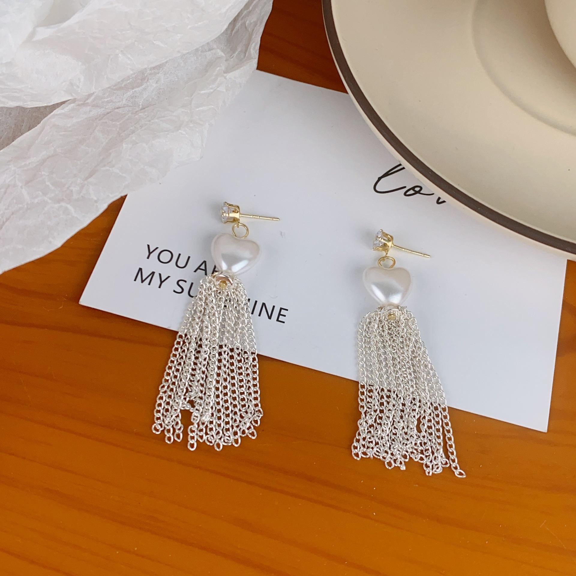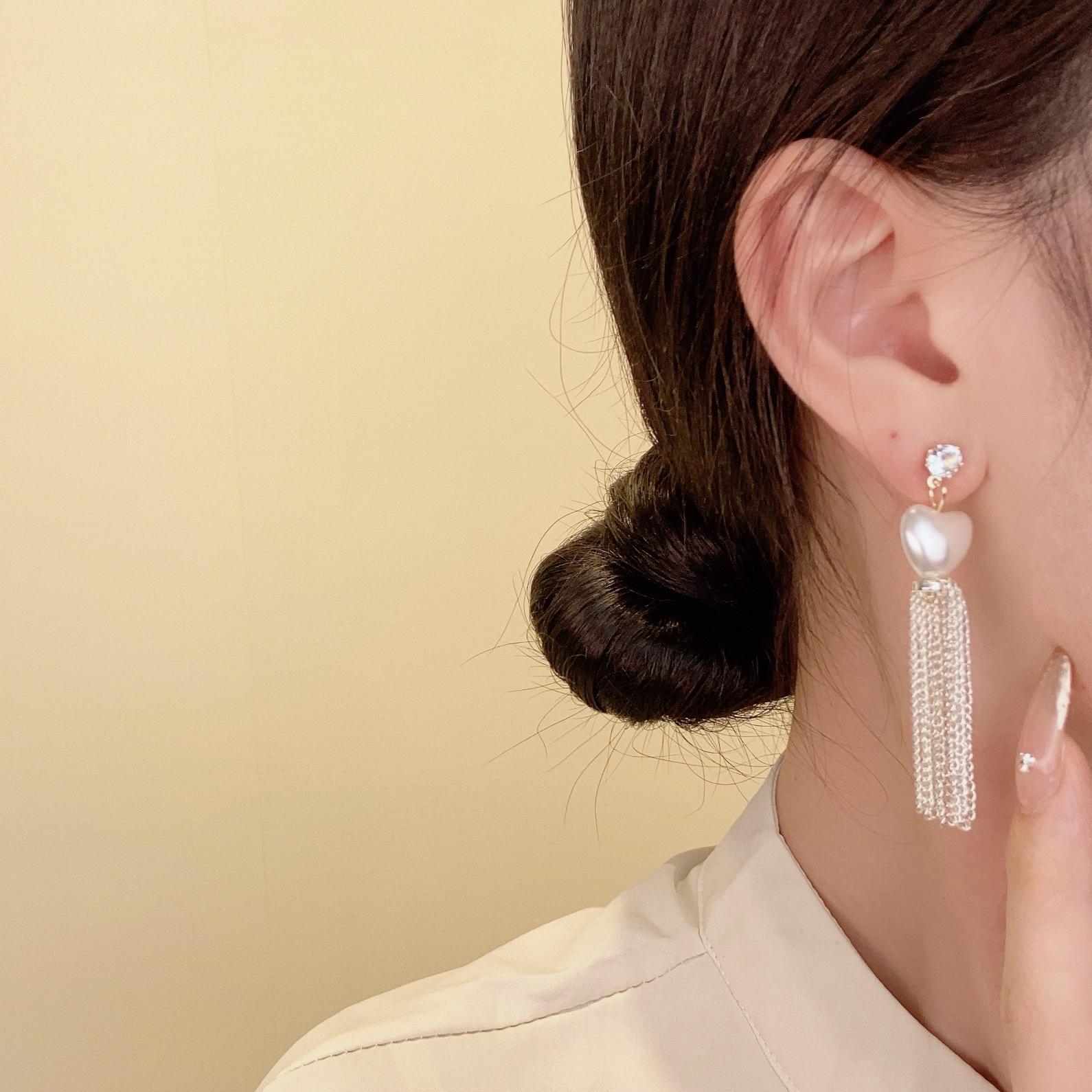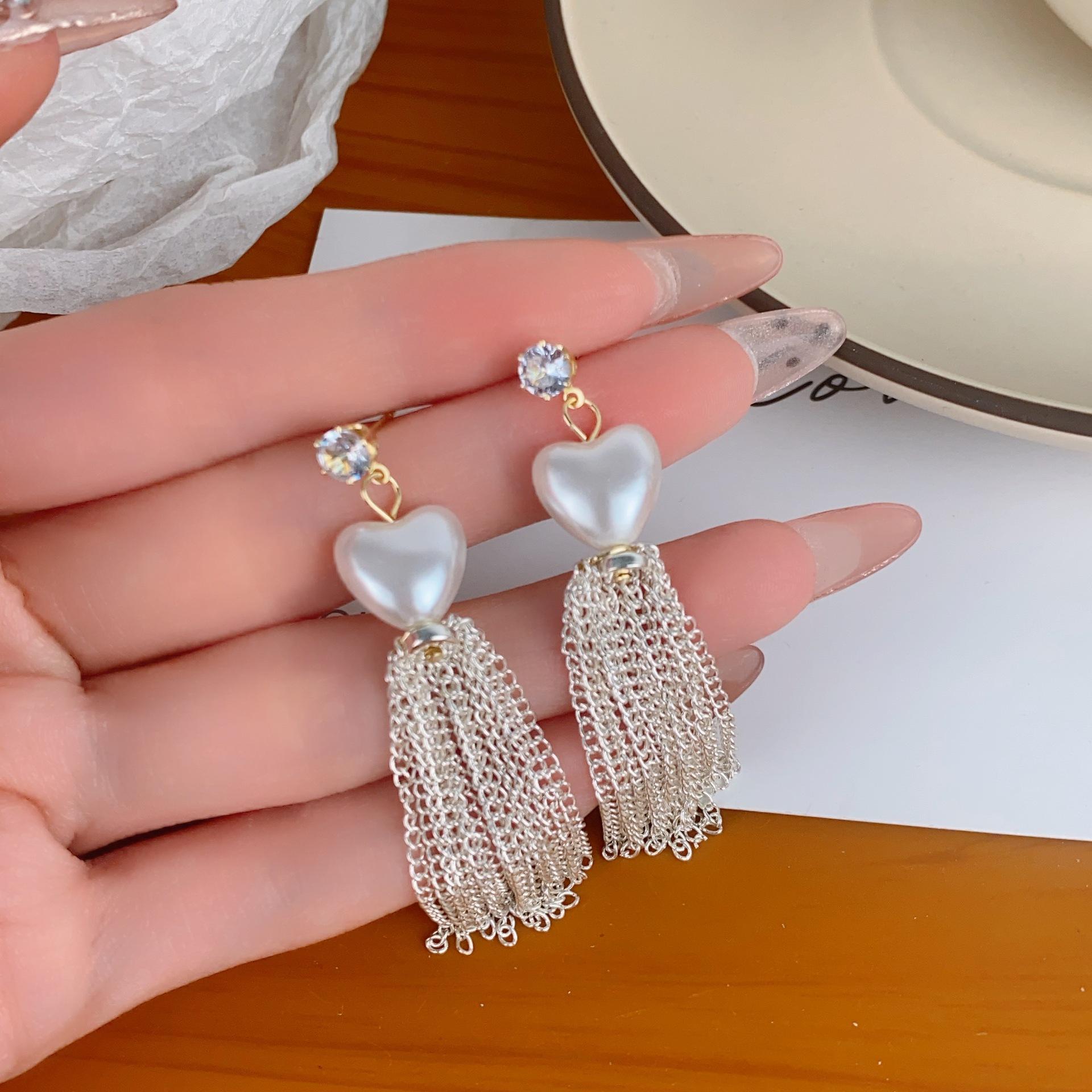 Compre Brincos de pérolas artificiais de luxo leves, estilo francês, brincos longos e elegantes com borlas super fofas e elegantes, leves e luxuosos da moda no atacado no Joom.pro