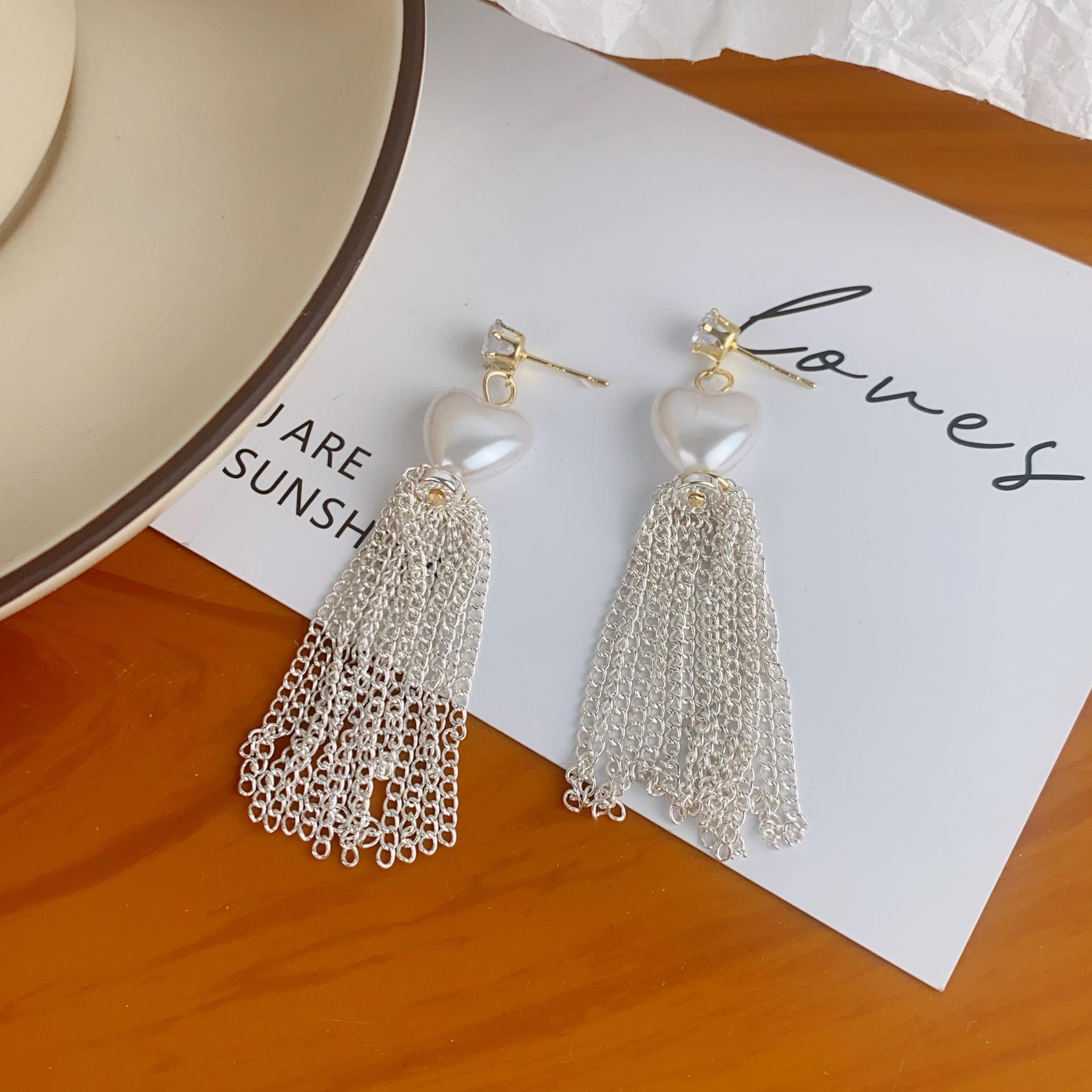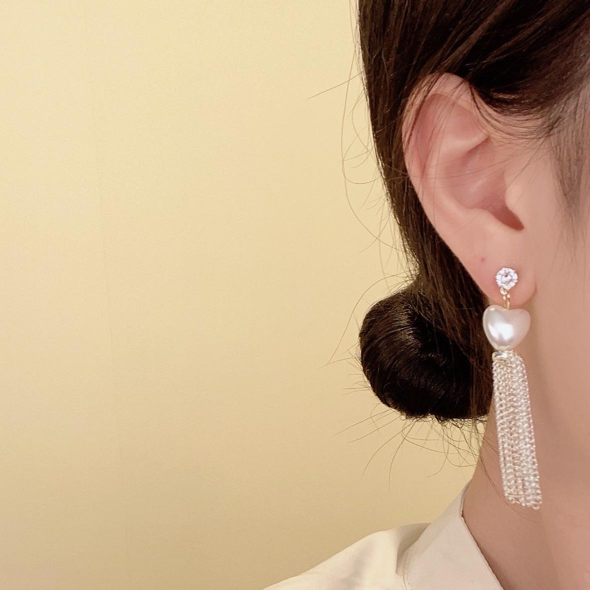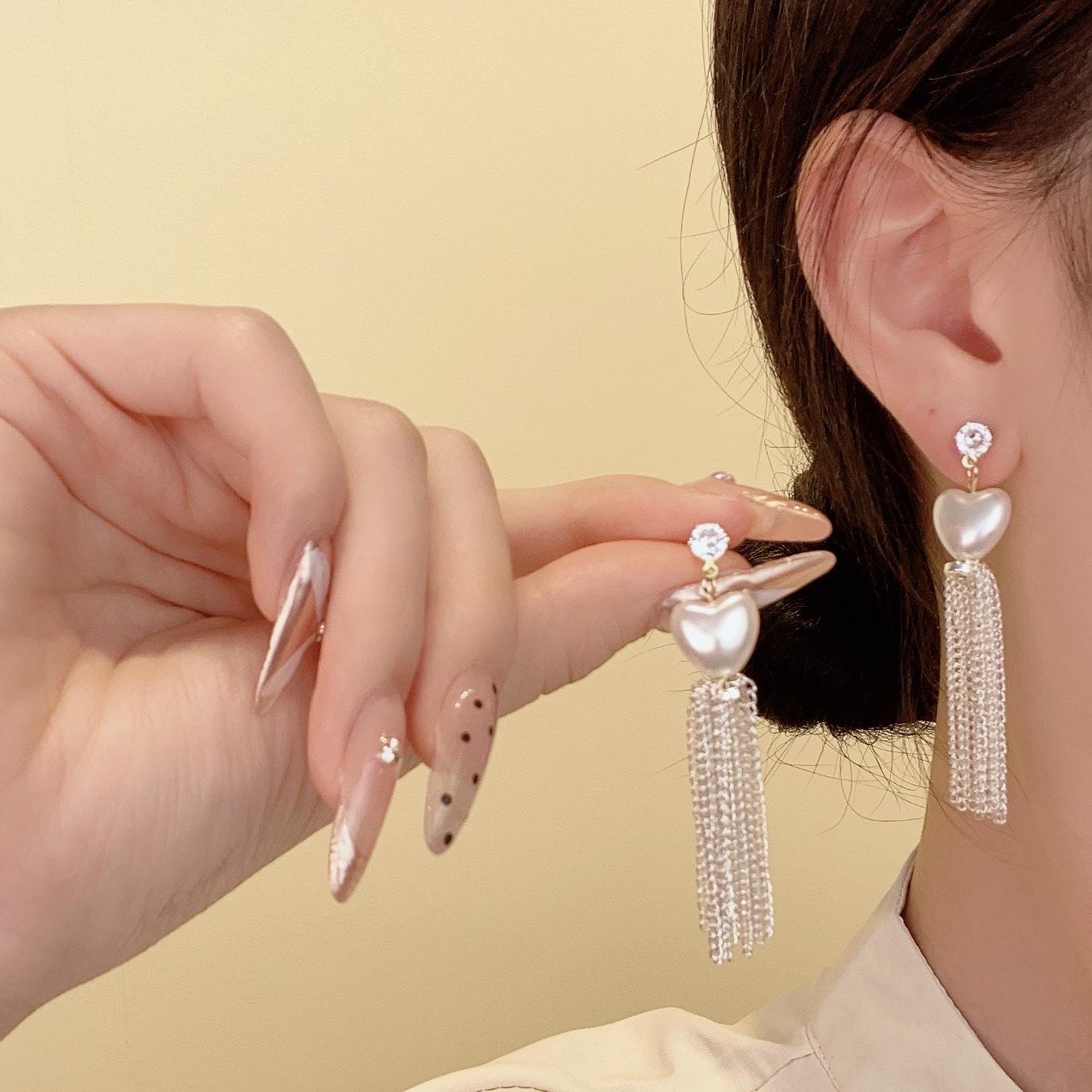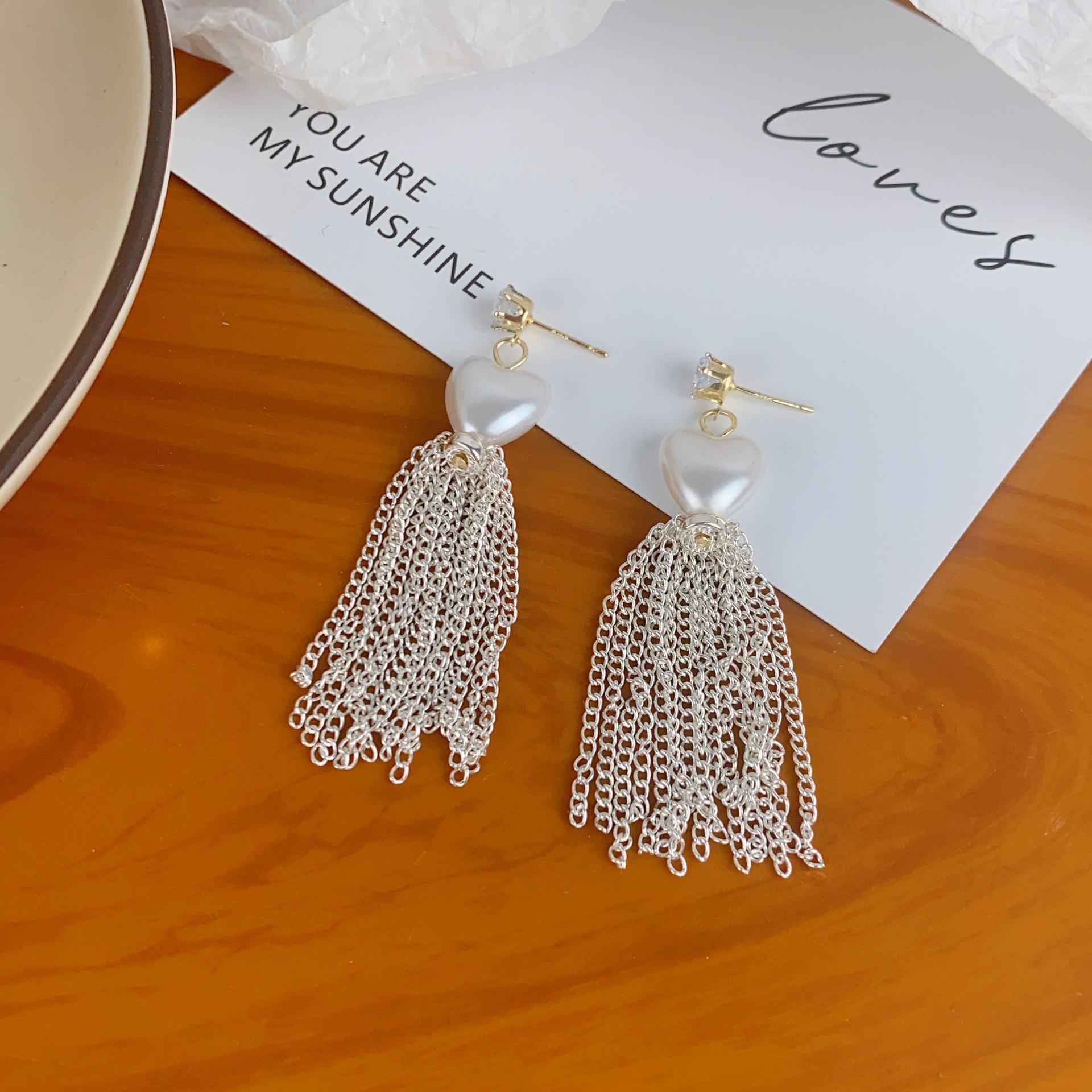 Compre Brincos de pérolas artificiais de luxo leves, estilo francês, brincos longos e elegantes com borlas super fofas e elegantes, leves e luxuosos da moda no atacado no Joom.pro