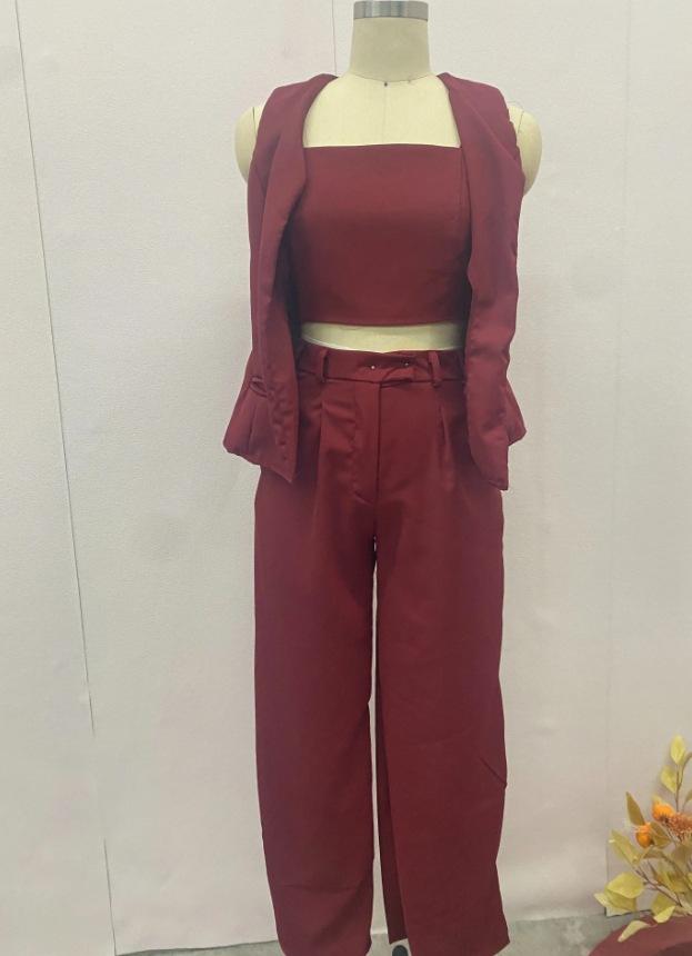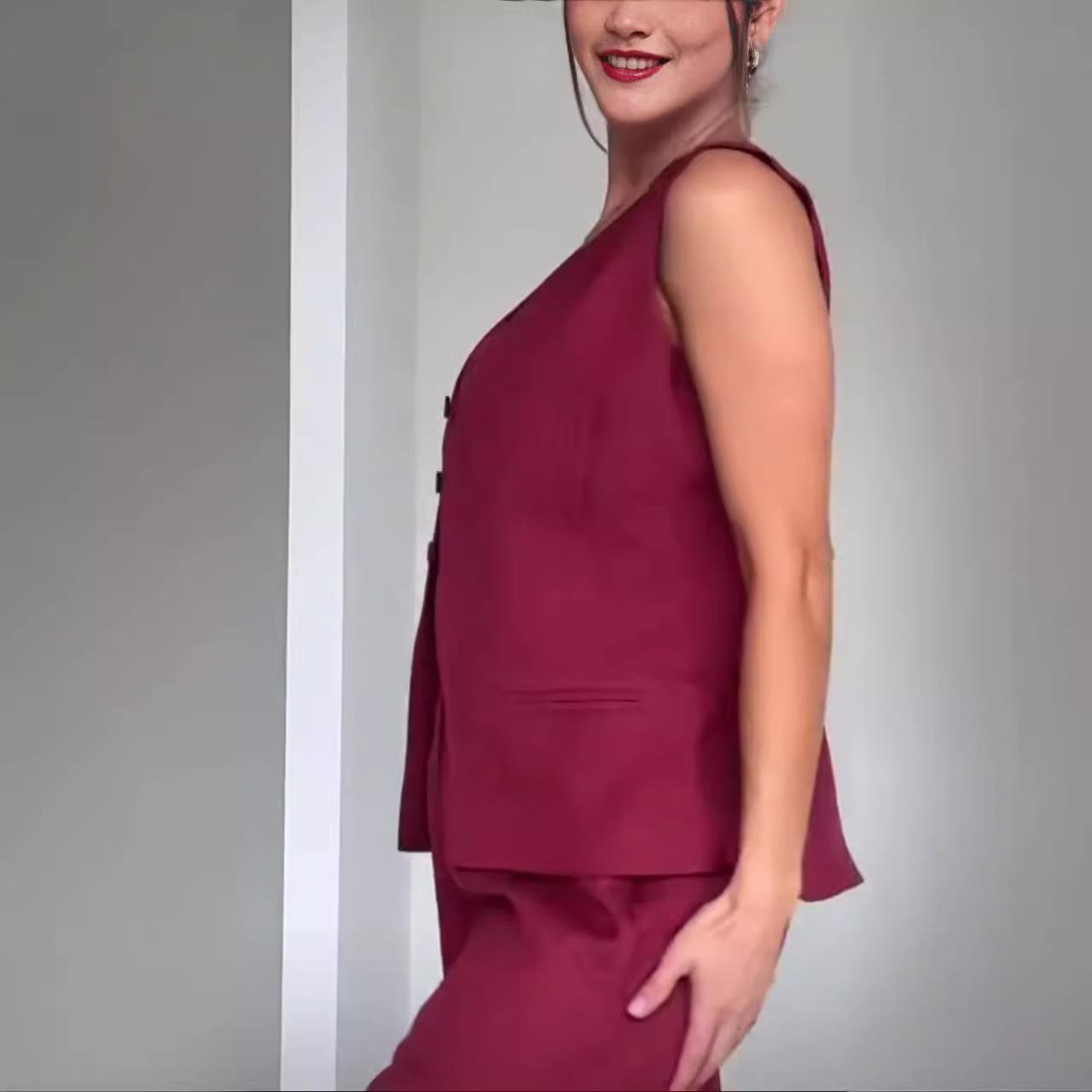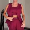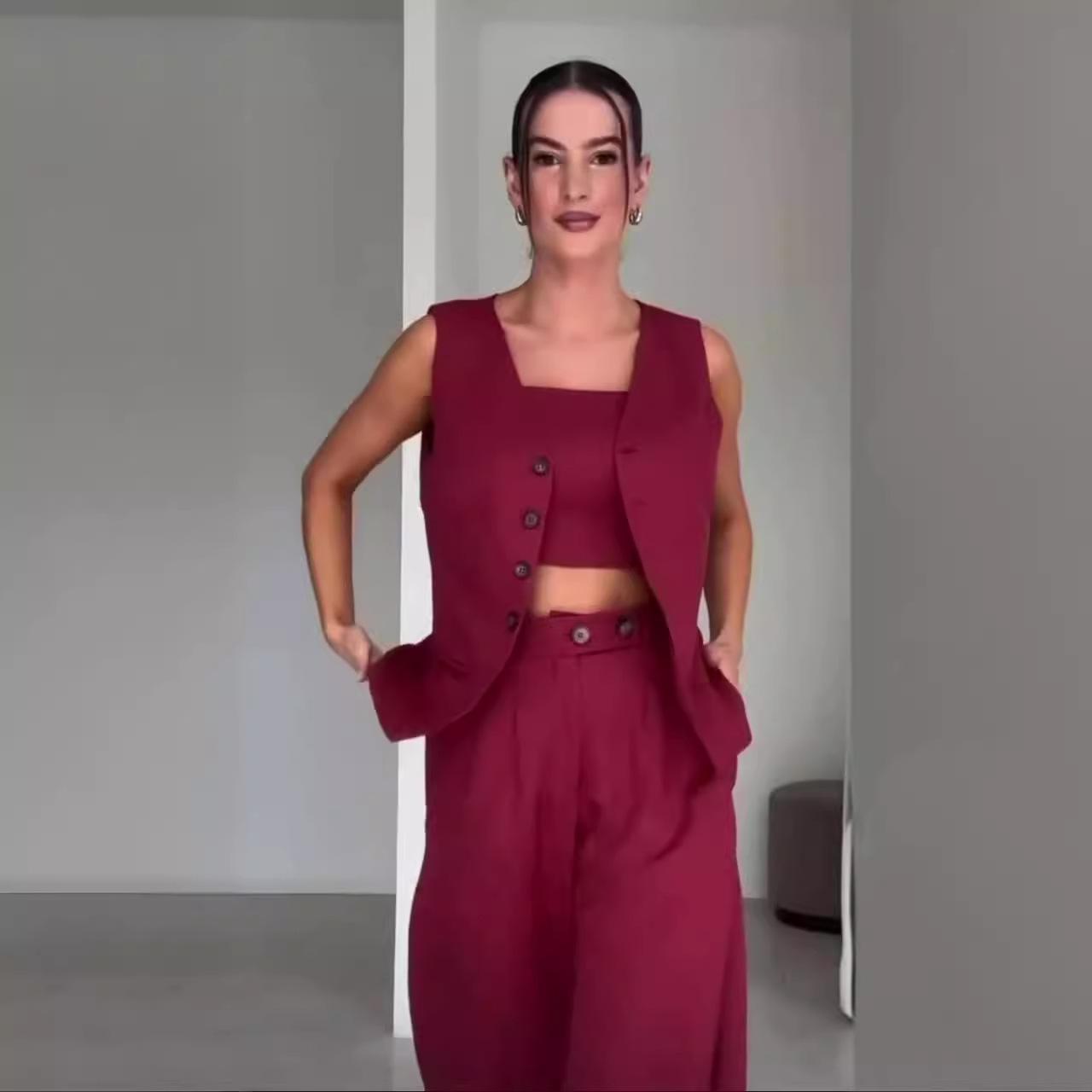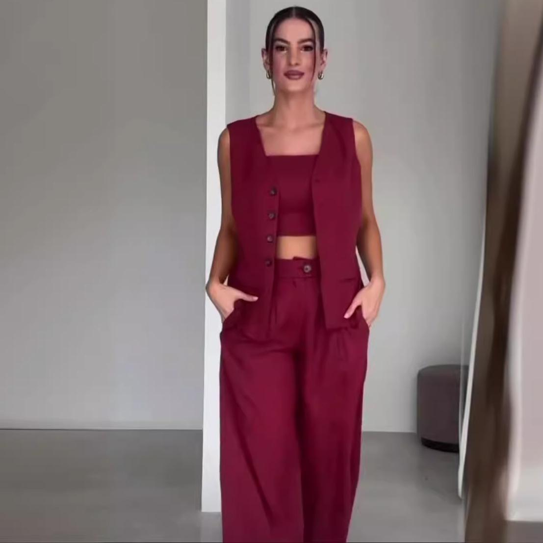 2024 Verão Nova Amazônia Europeia e Americana Moda Transfronteiriça Cor Sólida High-end Temperamento Colete de Três Peças para Mulheres