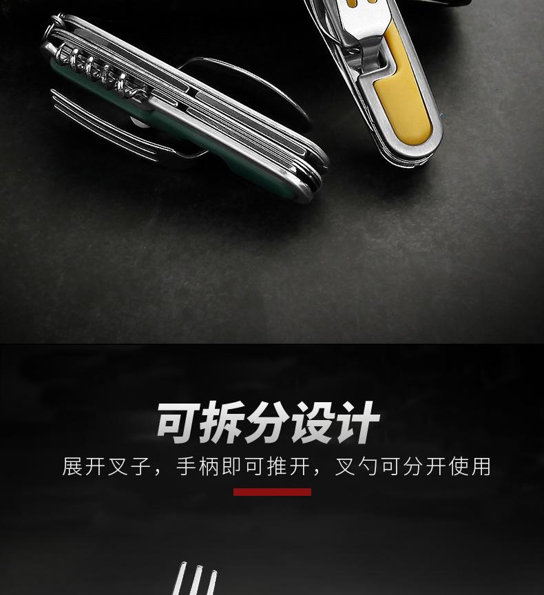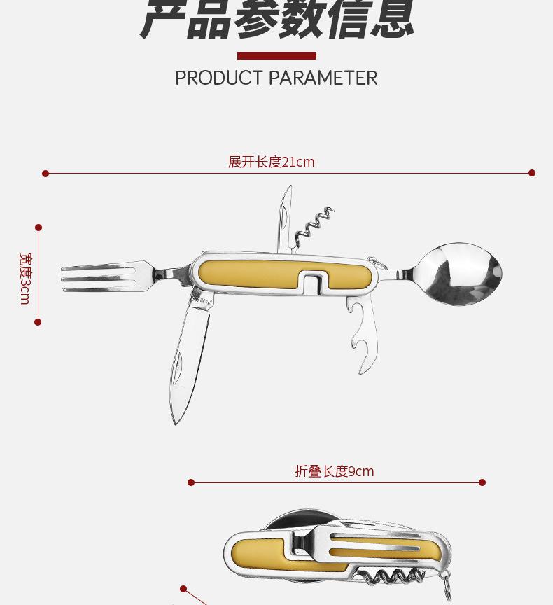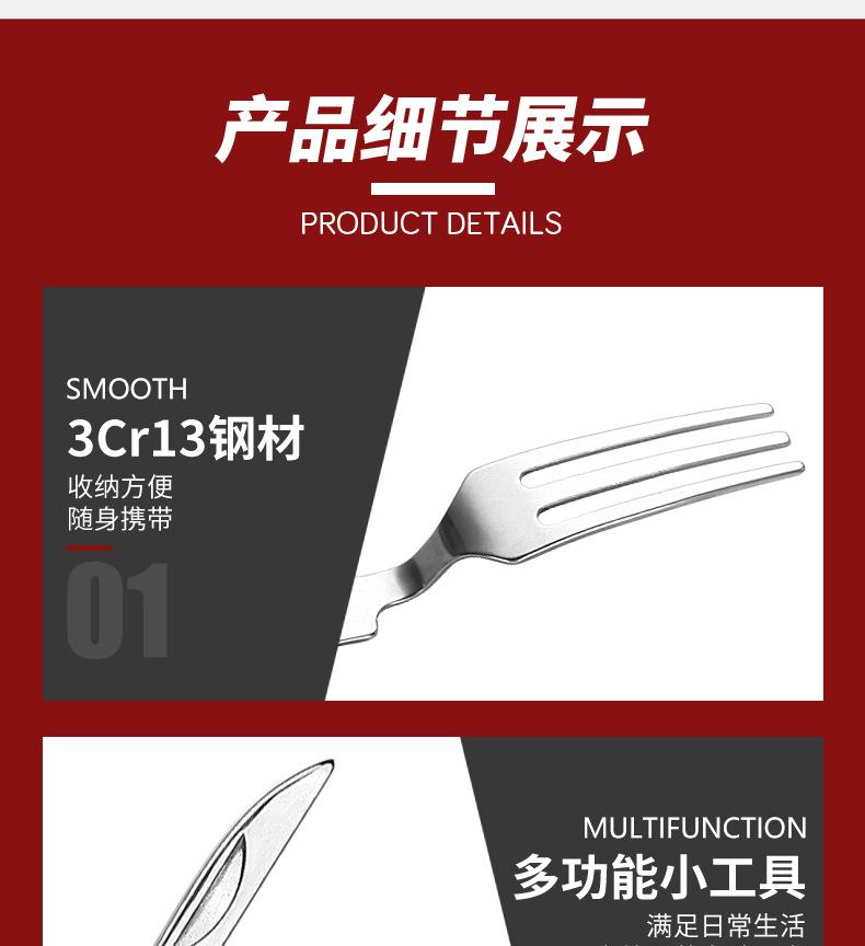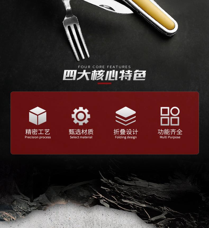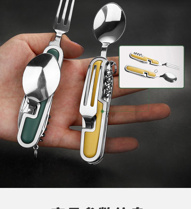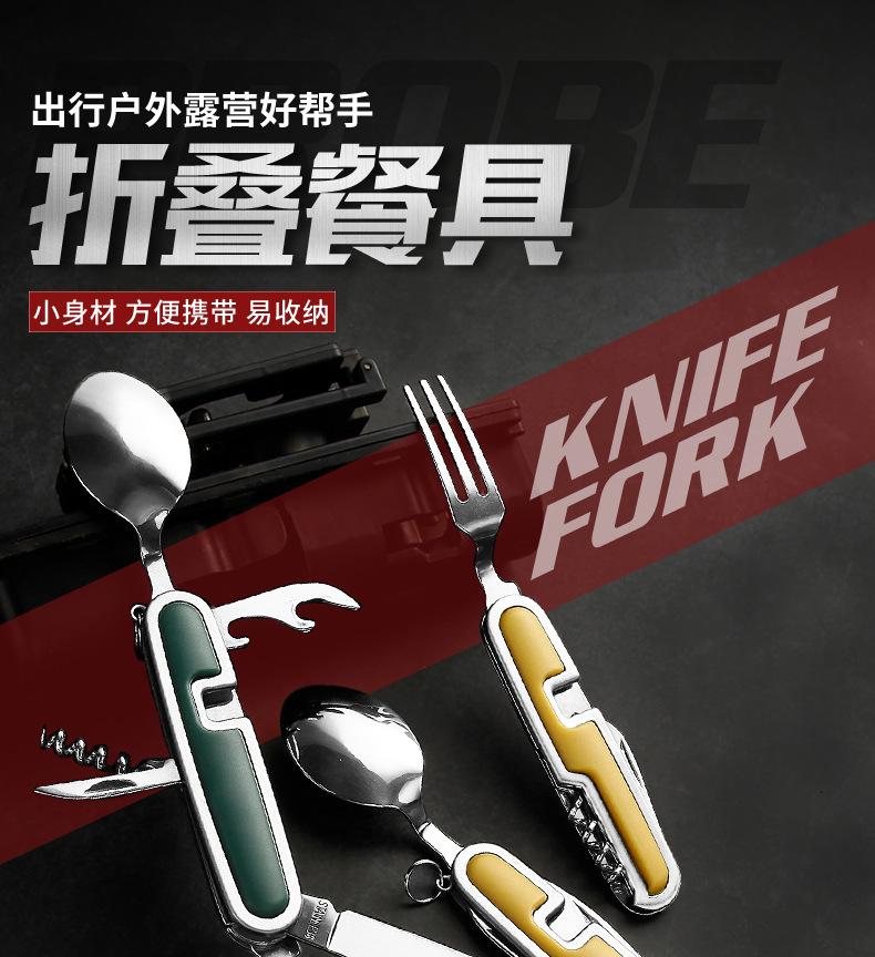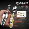 Camping Garfo de Três Pontas Multifuncional Estilo Viagem Camping Artefato Aço Inoxidável Faca, Garfo e Colher Combinação Portátil Dobrável de Camada Dupla Talheres