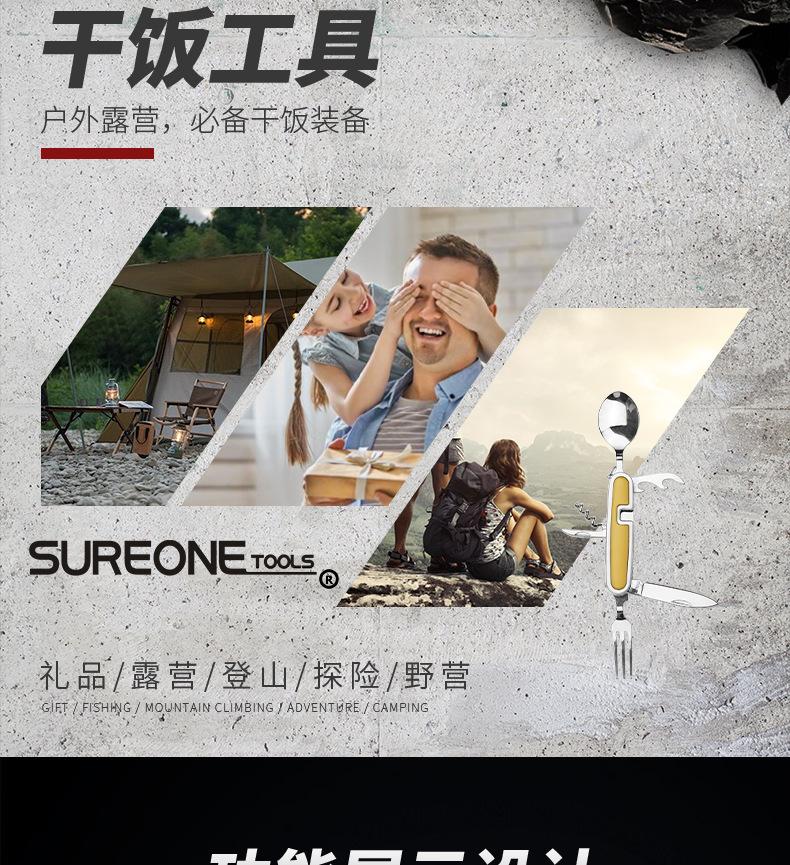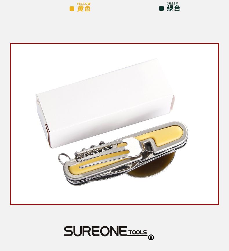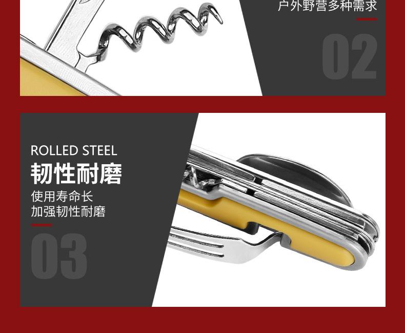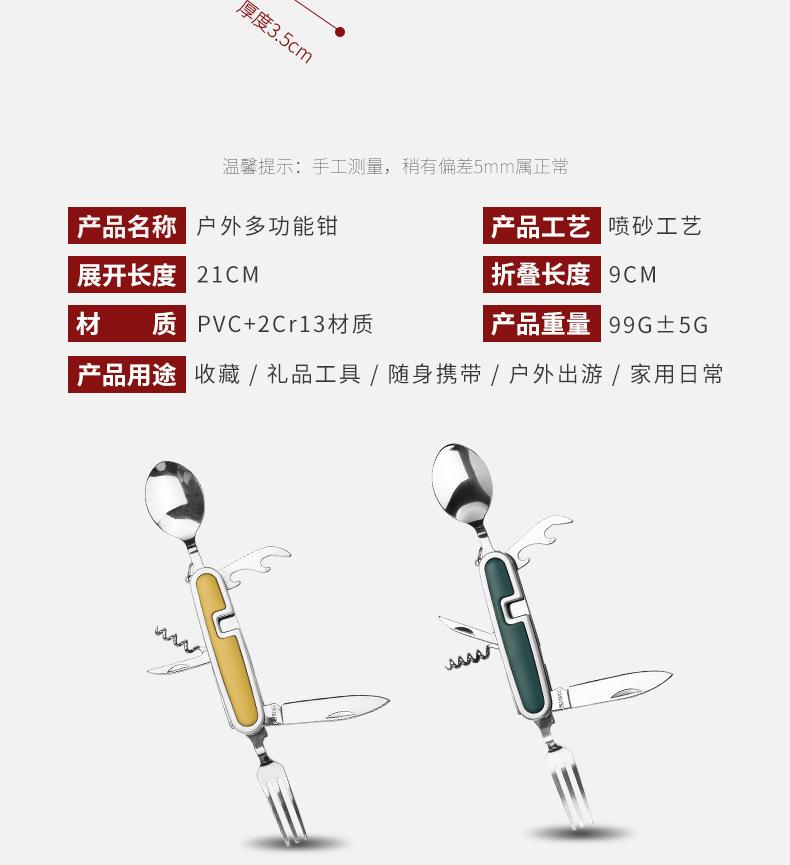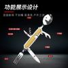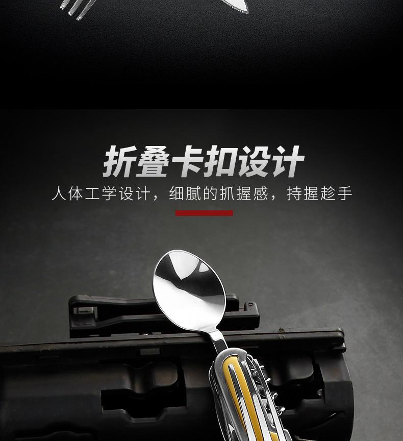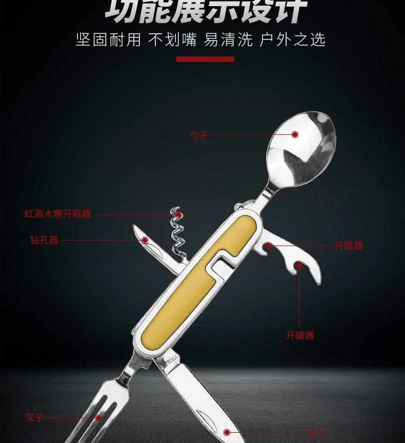 Camping Garfo de Três Pontas Multifuncional Estilo Viagem Camping Artefato Aço Inoxidável Faca, Garfo e Colher Combinação Portátil Dobrável de Camada Dupla Talheres