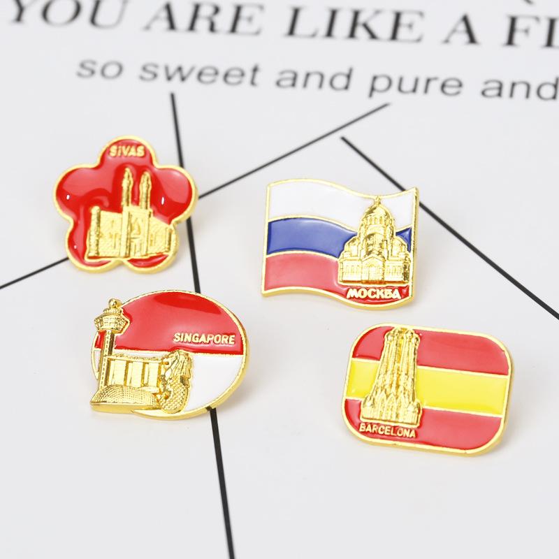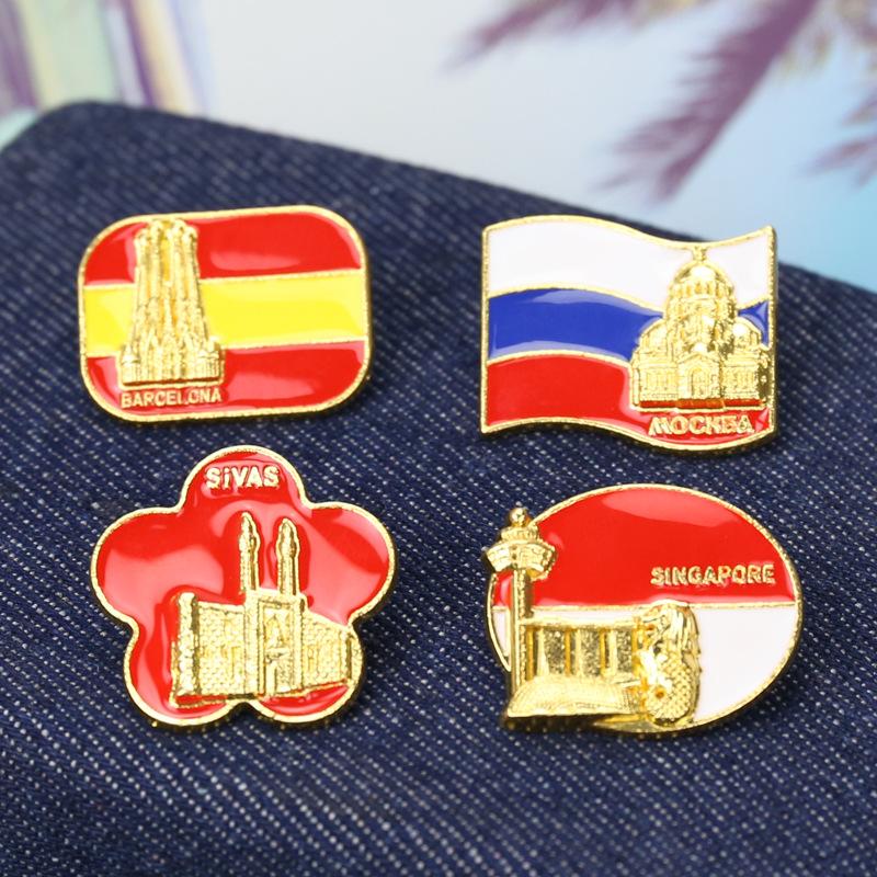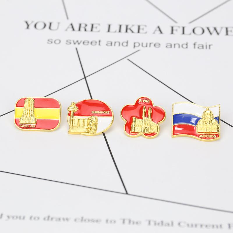 Amazon Broche de construção de bandeira de novo produto transfronteiriço Spot Broche de desenho animado de bandeira espanhola russa