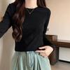 Camiseta Versátil de Manga Comprida Bm Style Americana Gola Redonda Três Botões Cor Pura para Sexys Nova Slim Fit Top para Usar por Baixo
