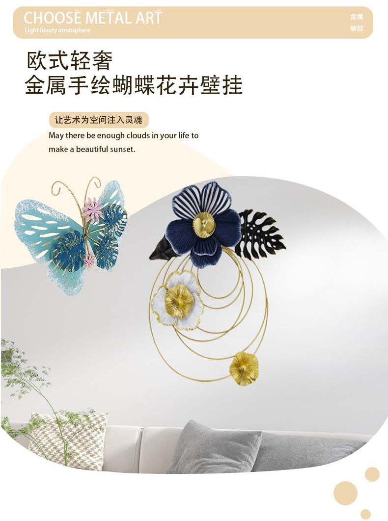 Metal pintado à mão borboleta flor parede pendurado oco alto tv parede quarto decoração ferro forjado parede pendurado atacado