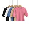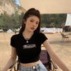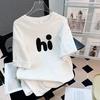 Francês 2024 Primavera e Verão Nova Camiseta Feminina de Manga Curta com Decote Redondo Estampa Lábios Elástica Top Slim de Meia Manga