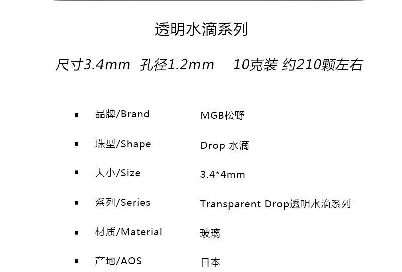 Japão Matsuno Mgb Contas Transparentes Gota d'Água Dr3.4Mm Pingente Acessórios Contas Feitas à Mão DIY Contas Contas de Arroz Importadas