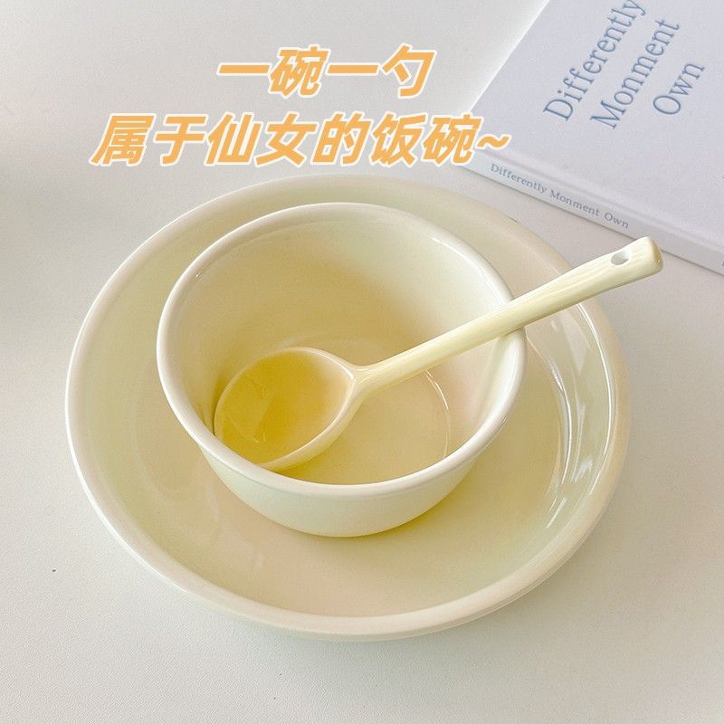 Conjunto Tigela e Colher de Cerâmica Milk Fufu, Cremoso e Fofo, Tigela de Arroz Doméstica, Resgate de Pontos para Eventos Empresariais, Louça Infantil