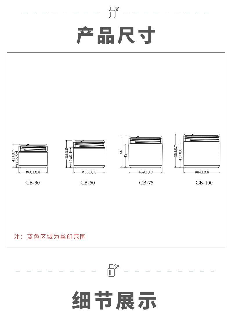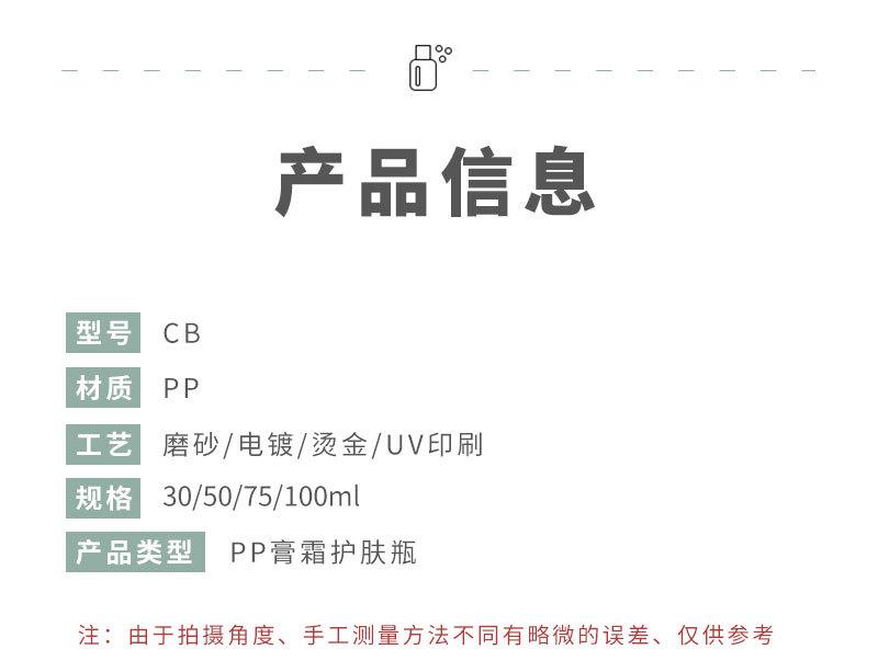 Branco em estoque PP parede grossa camada única creme frasco 100g máscara de dormir frasco 30ml creme para os olhos frasco yuize simples 75g