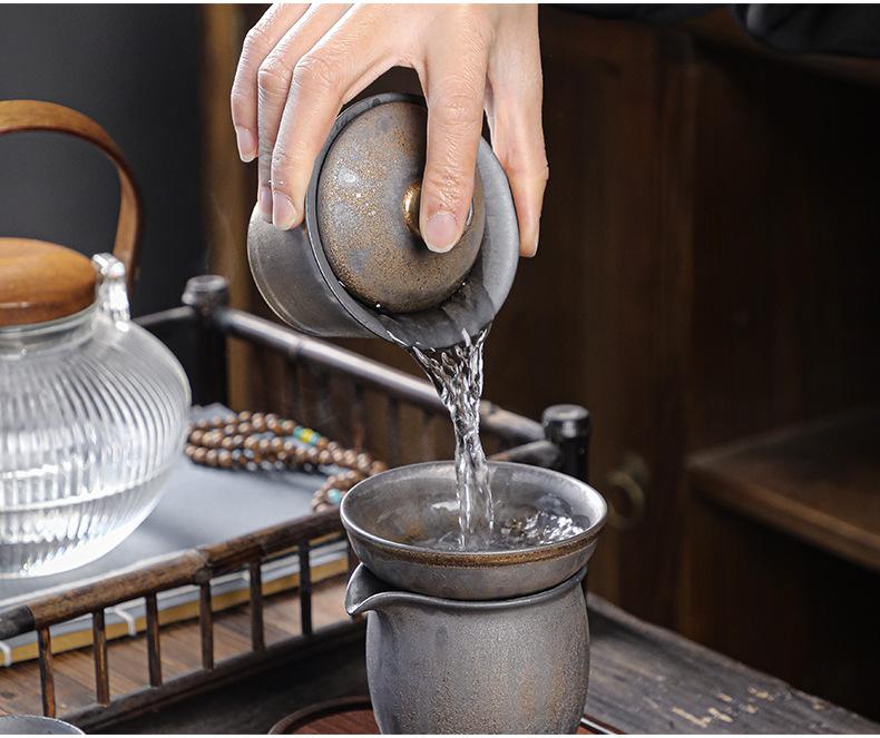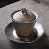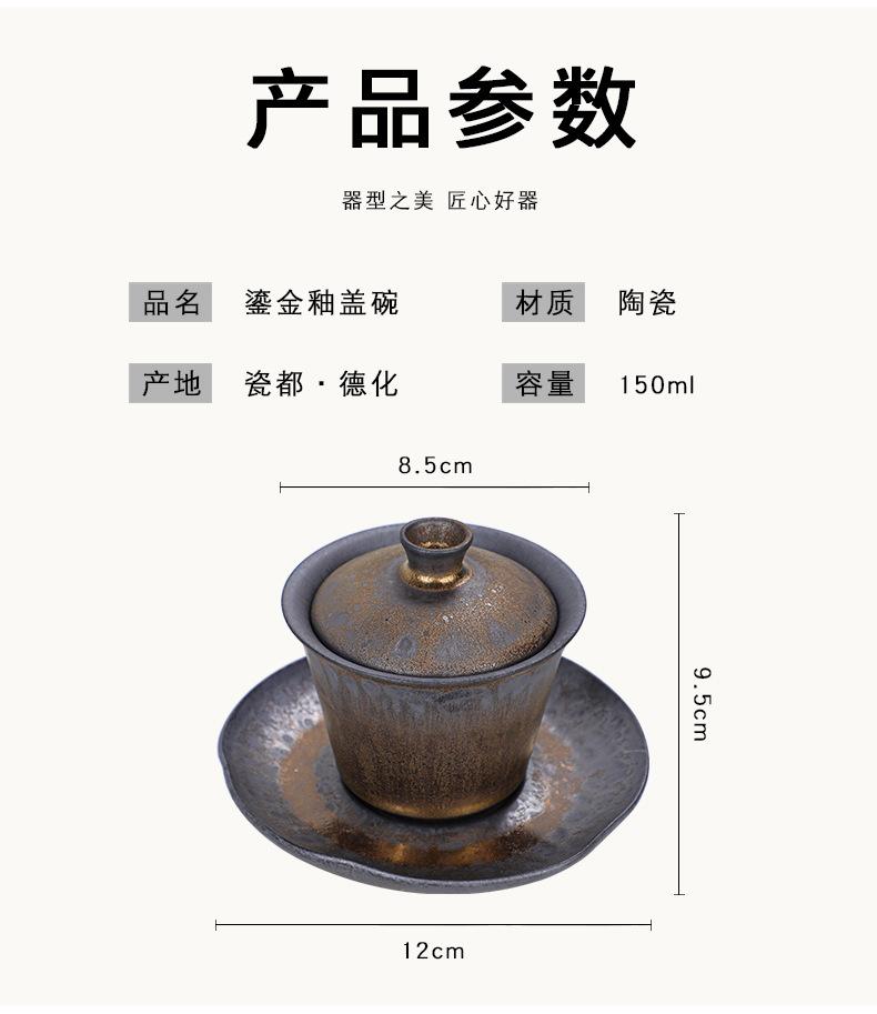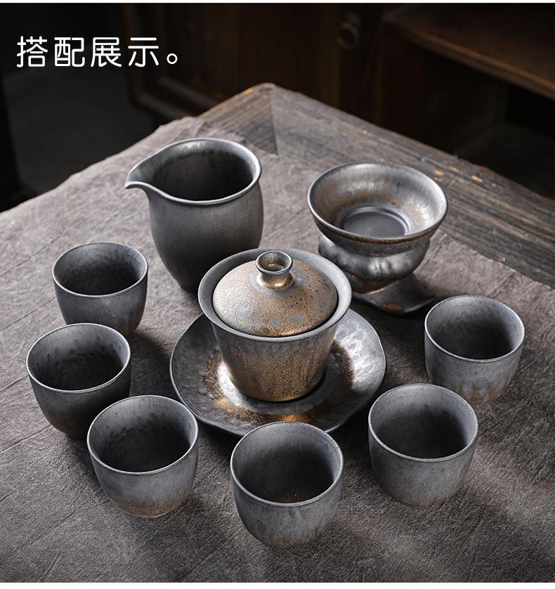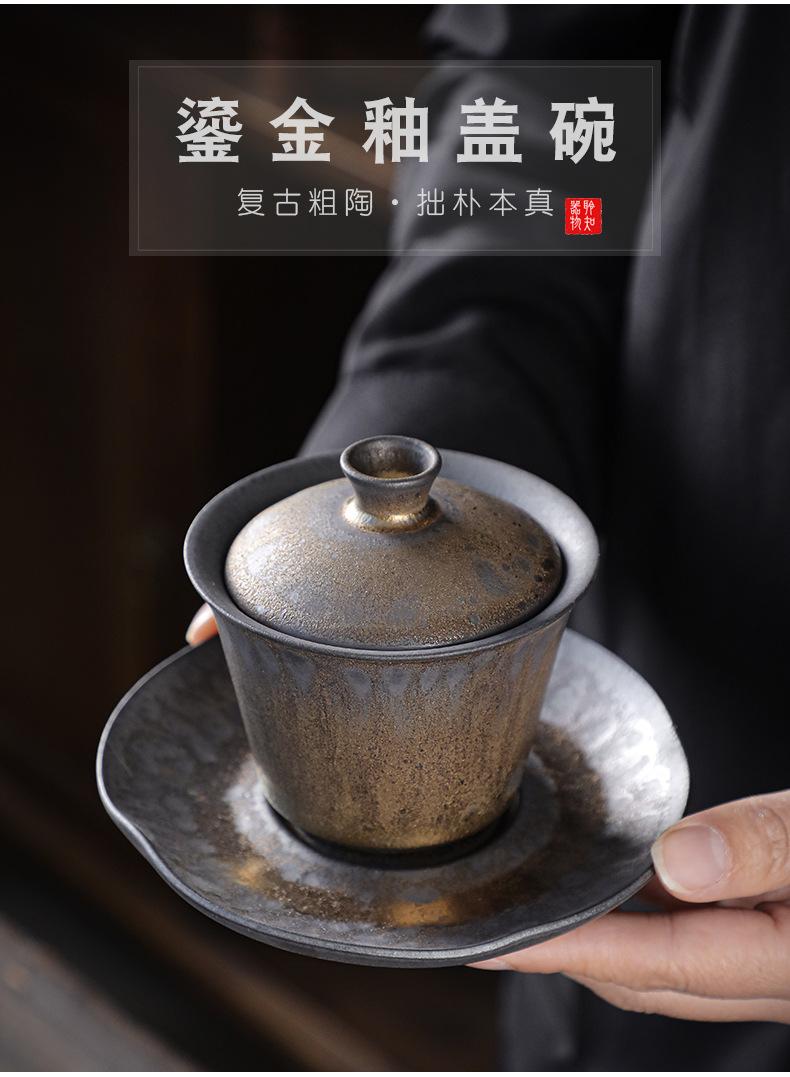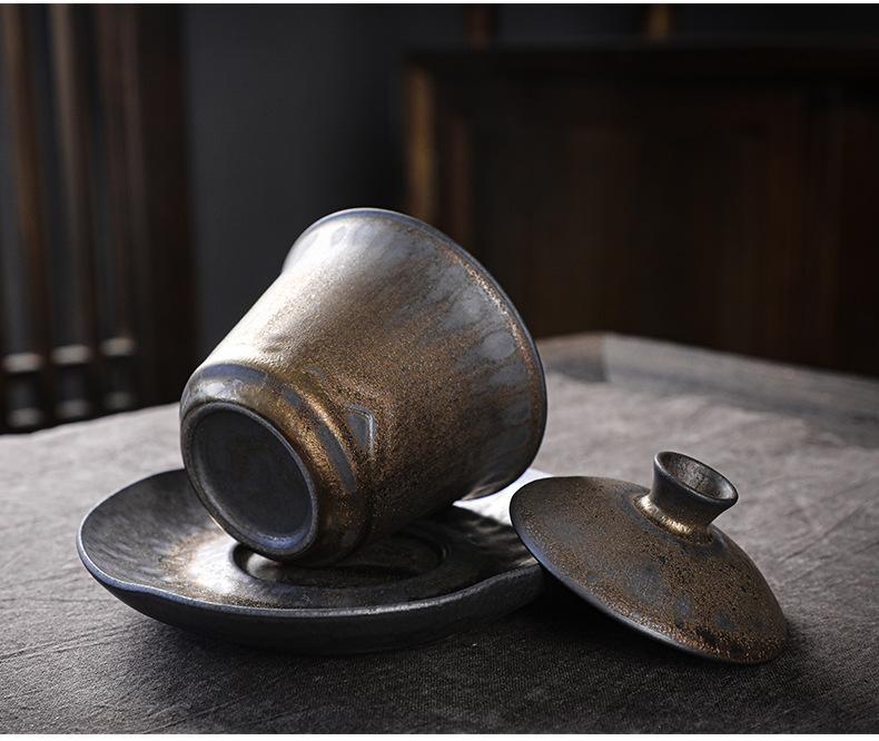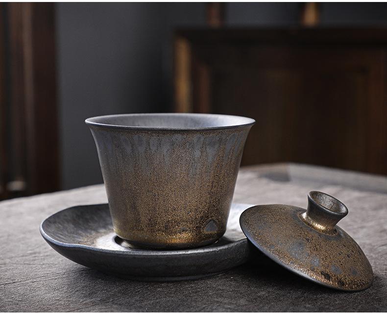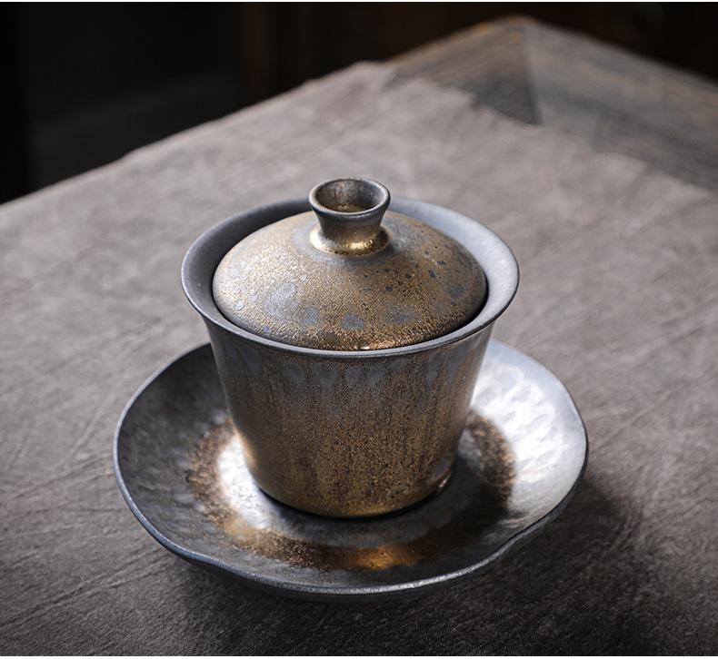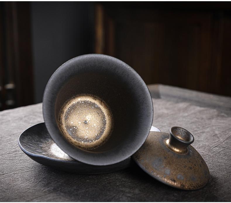 Grés Sancai Gai Tigela Xícara de Chá Única Casa Estilo Japonês Vintage Banhado a Ouro Ferro Ferrugem Esmalte Cerâmica Kung Fu Jogo de Chá Tigela de Chá
