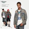 Retro trendy Denim casaco dos homens primavera e outono americano high street solto lavado desgastado casual casaco com zíper