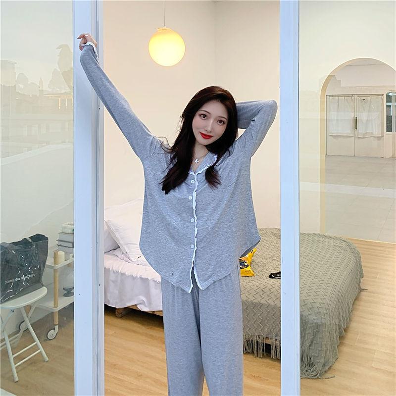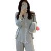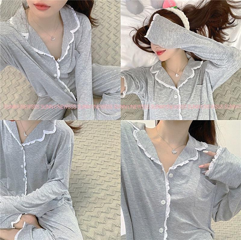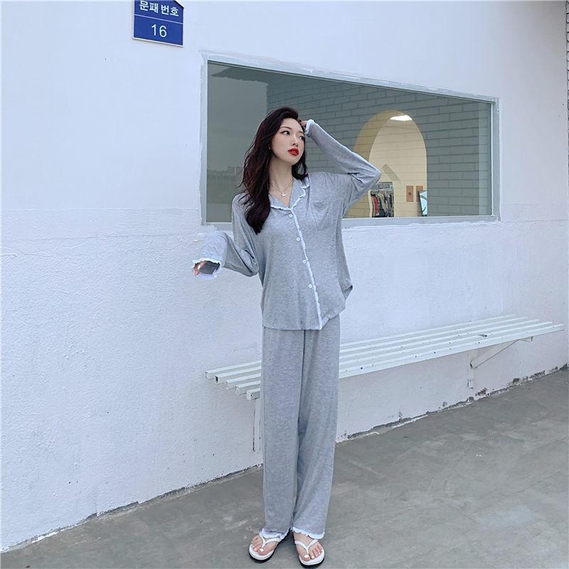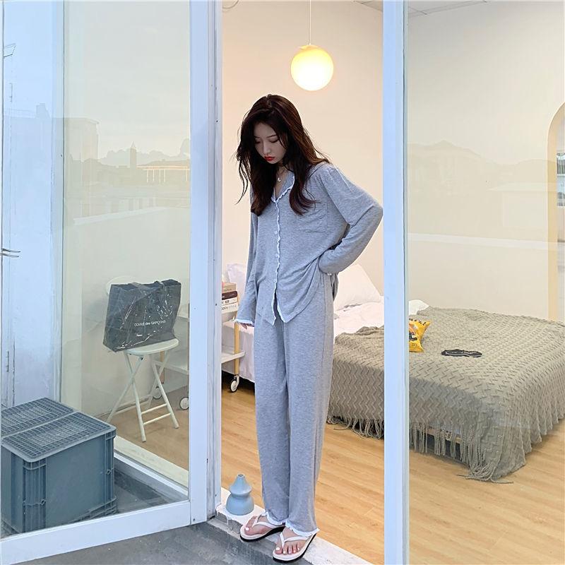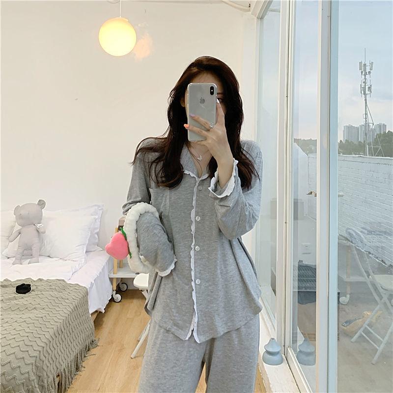 Internet Celebrity Cardigan Pijamas Femininos Primavera e Outono Manga Longa com Babados ins Estudante Estilo Coreano Roupas Domésticas Menos Terno Feminino de Duas Peças