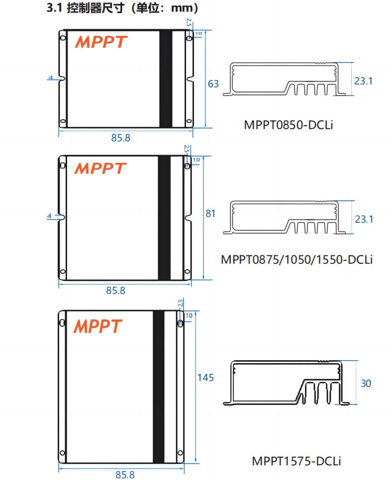 MPPT2075 DCH-20A, MPPT2075 DC/Li-20A, MPPT1575 DC/Li-15A, MPPT1550 DC/Li-15A, MPPT1050 DC/Li-10A, MPPT0875 DC/...
