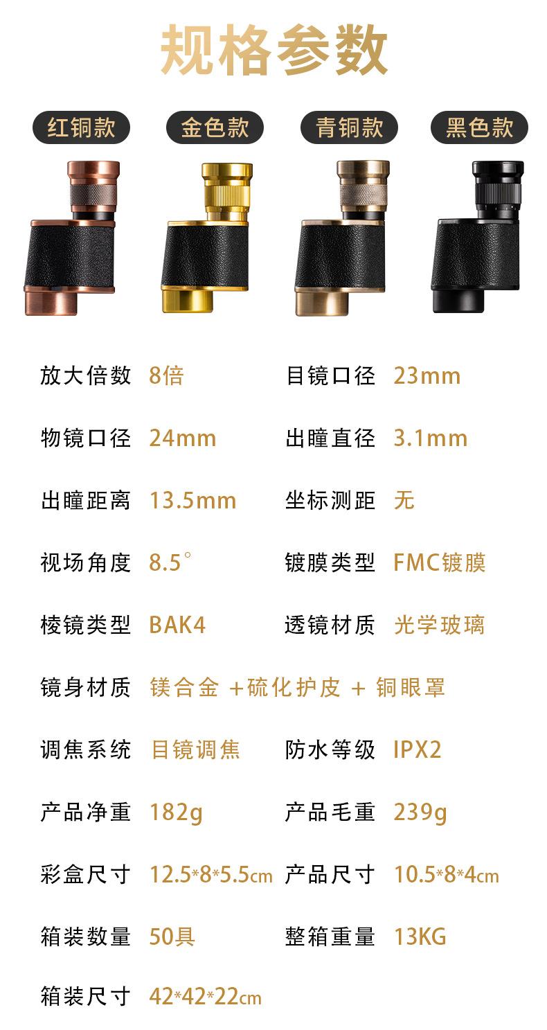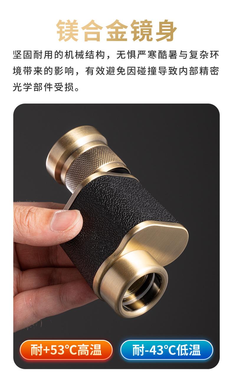 Fabricante Atacado Bronze 8X Telescópio Monocular Alta Definição Alta Potência Micro Visão Noturna Compacto Portátil Ao Ar Livre Transmissão ao Vivo Fotografia