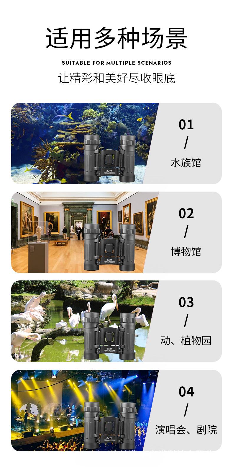 Atacado do Fabricante Binóculos Telescópio 8X21 Preto Costela Vertical Alta Definição Portátil Telescópio para Concerto Transfronteiriço