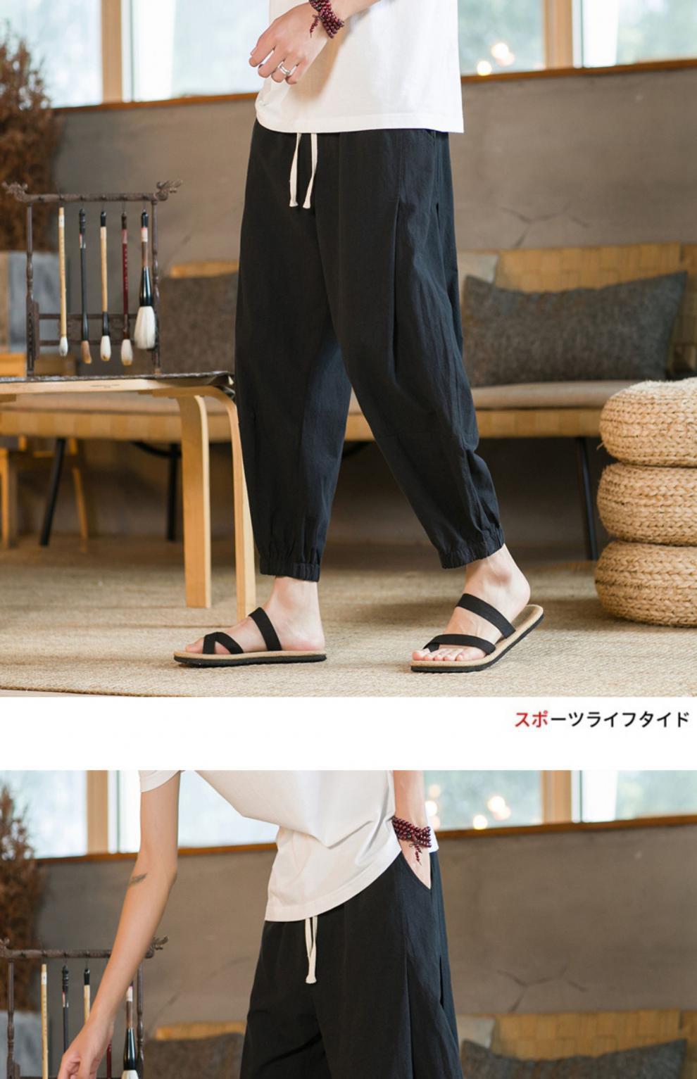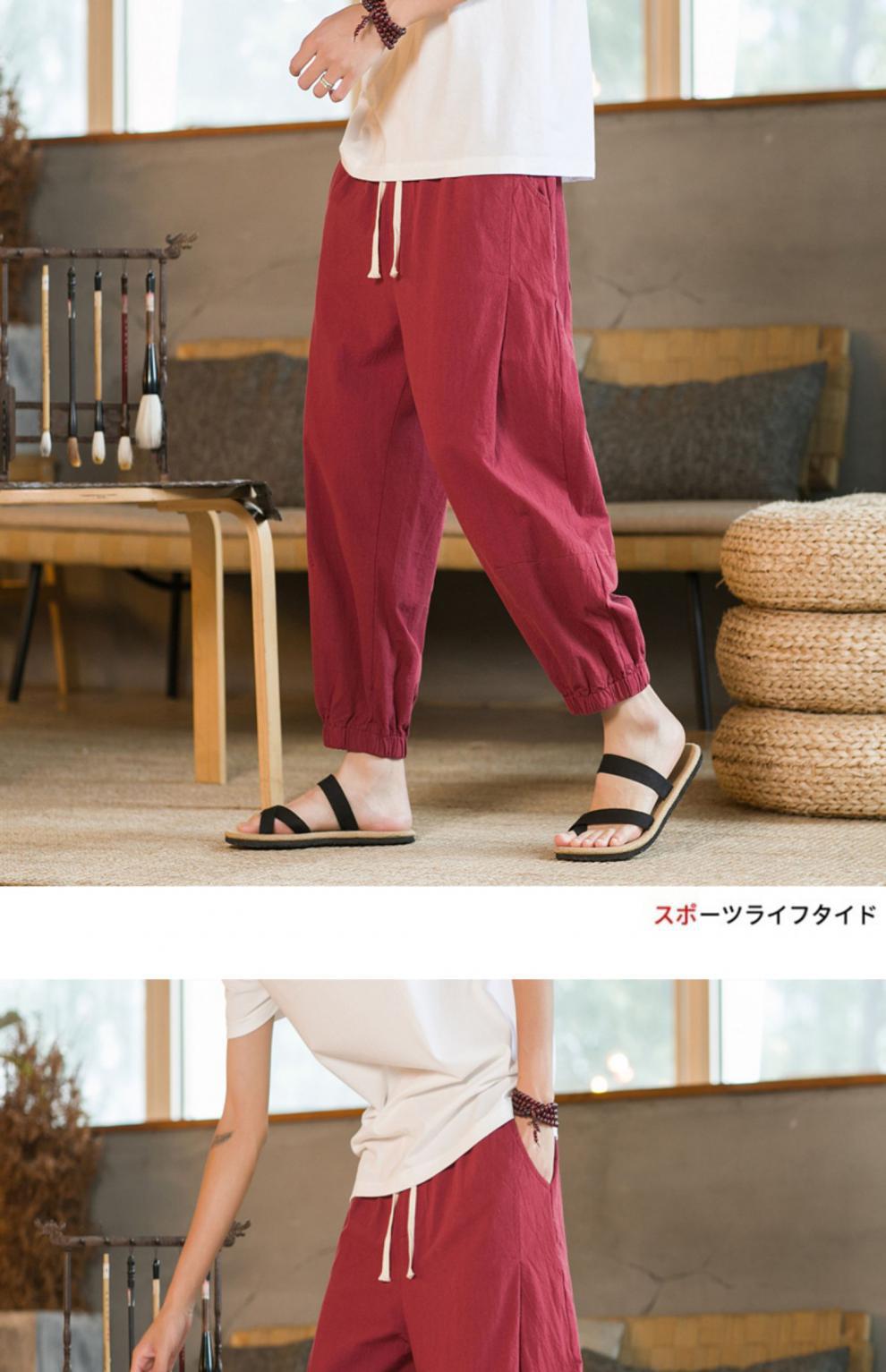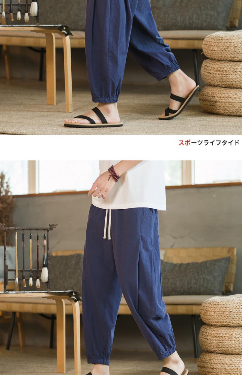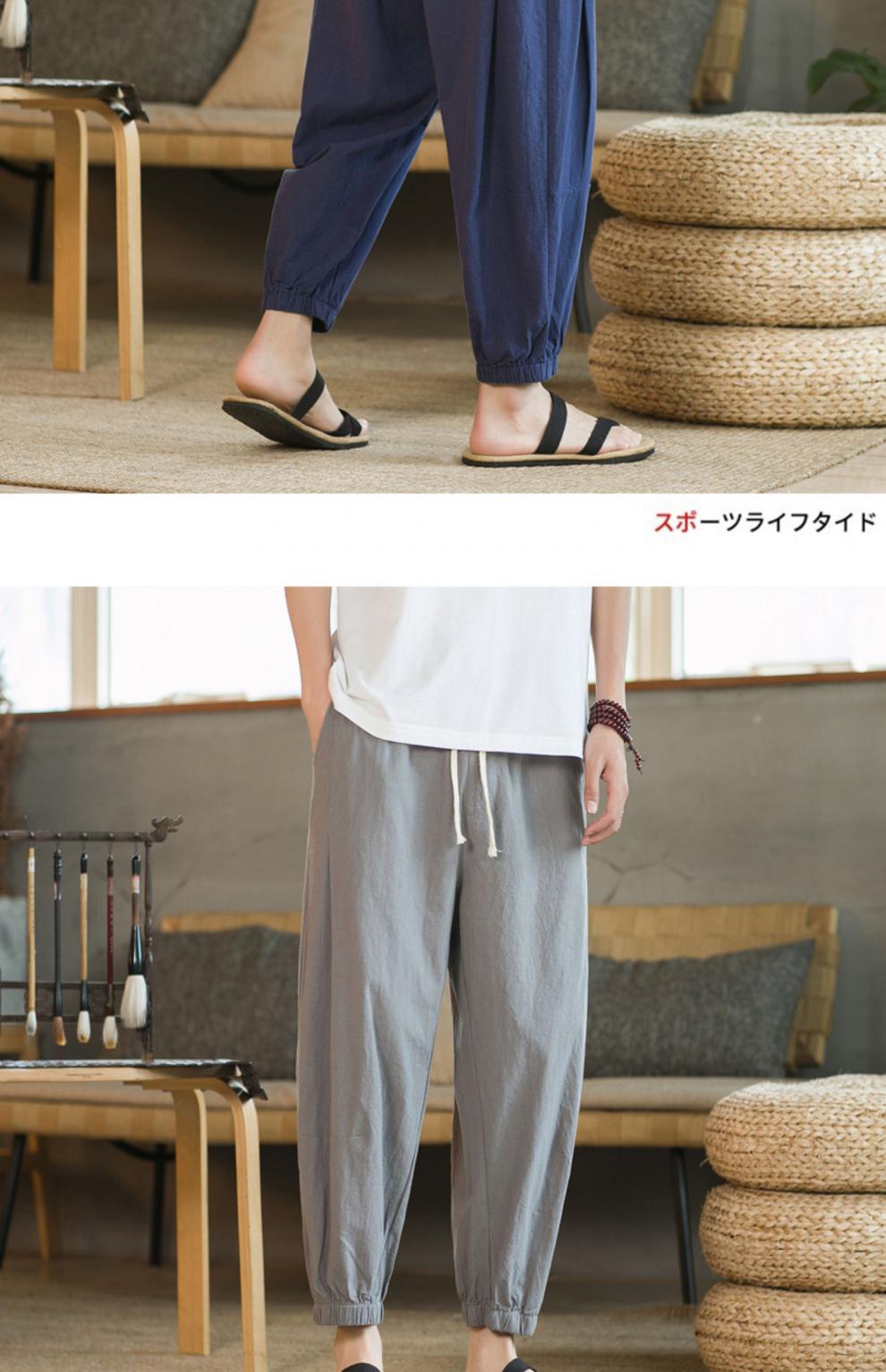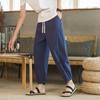 Verão Novo Linho Fino Solto Estilo Chinês Masculino plus size Calças Casuais Soltas Harlan Algodão e Linho Pacote Tornozelo-comprimento Calças