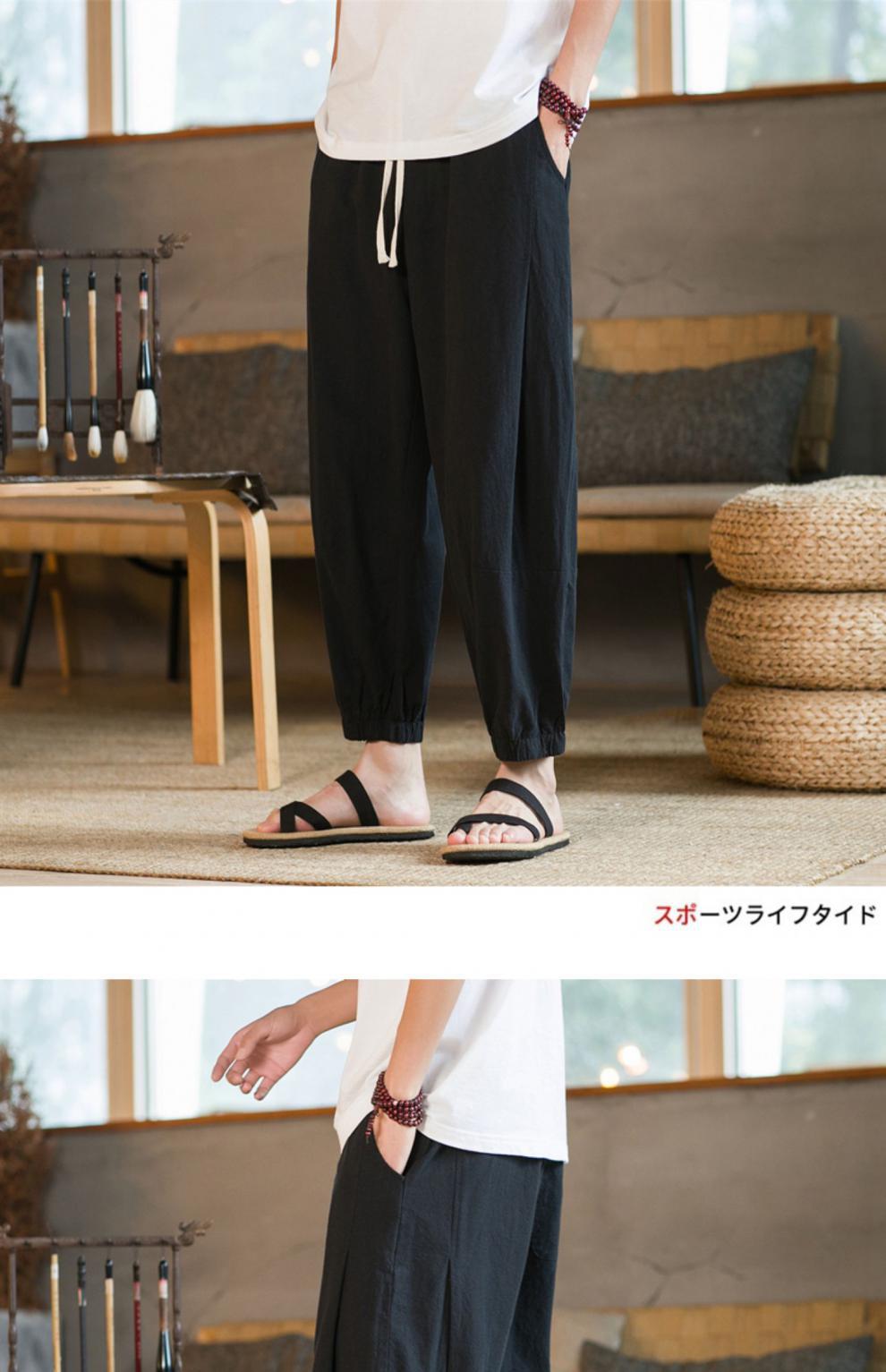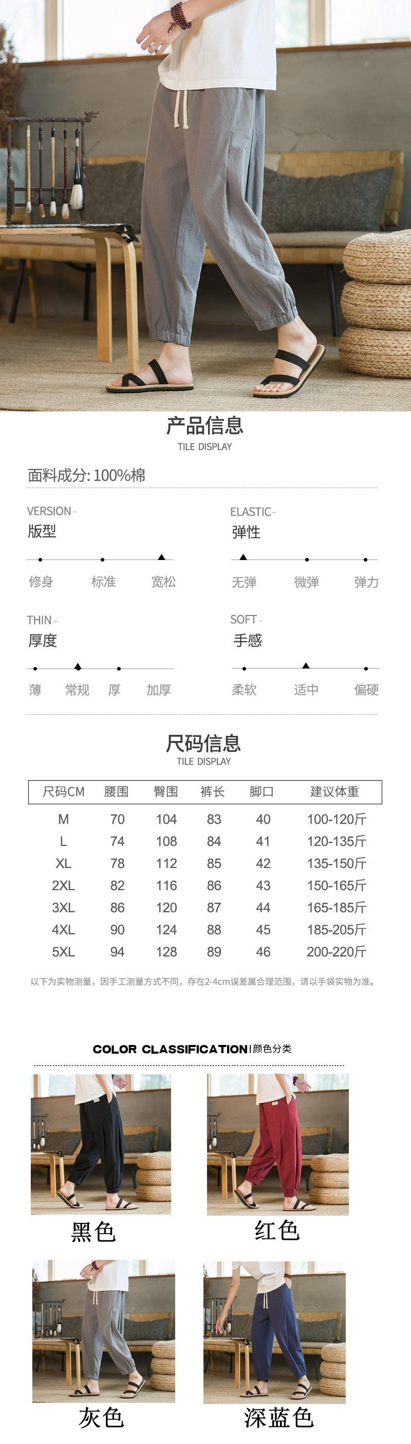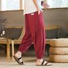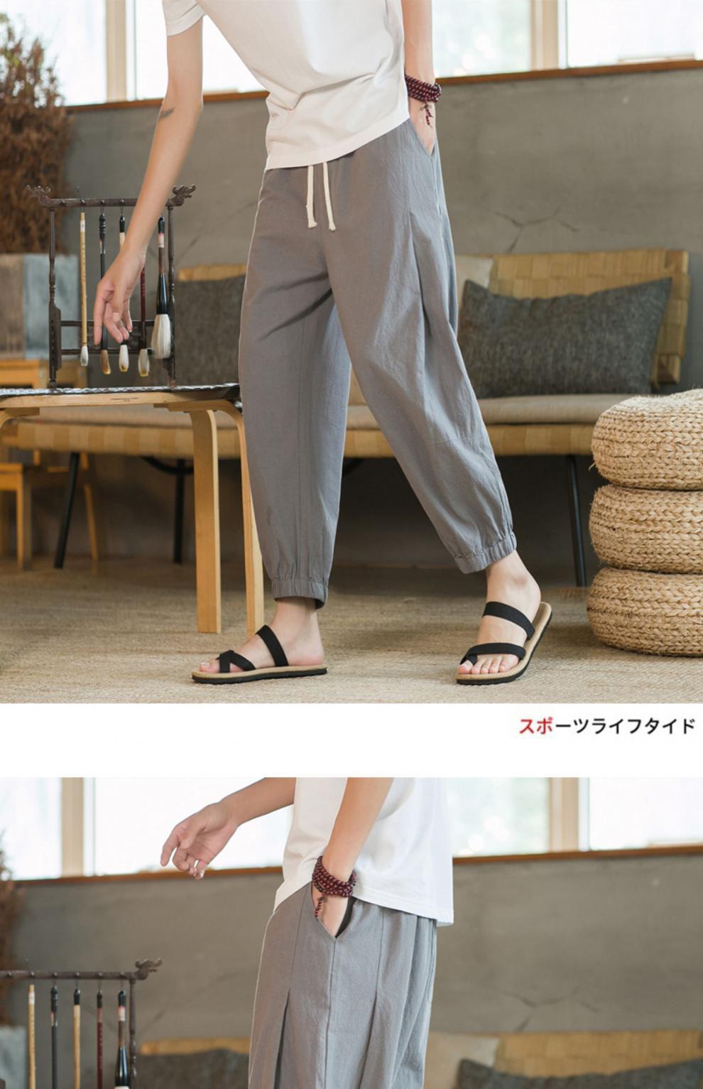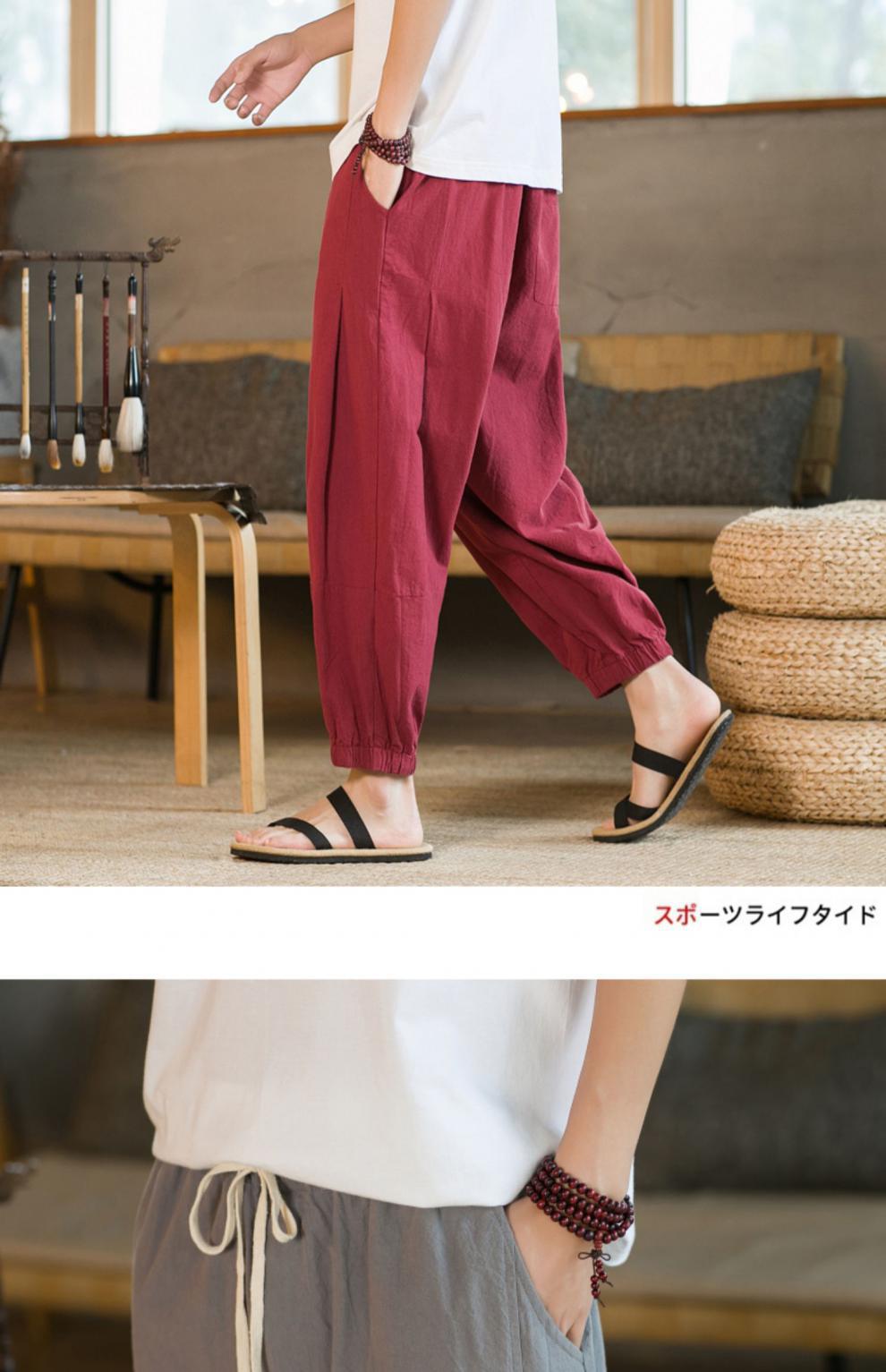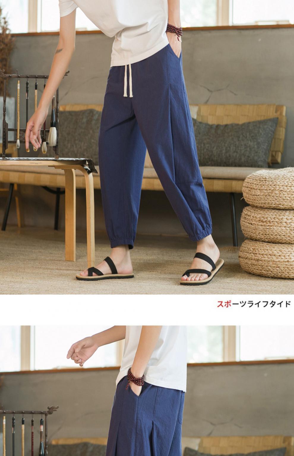 Verão Novo Linho Fino Solto Estilo Chinês Masculino plus size Calças Casuais Soltas Harlan Algodão e Linho Pacote Tornozelo-comprimento Calças