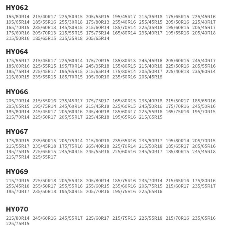 HY054, HY055, HY057, HY058, HY060, HY062, HY064, HY066, HY067, HY069, HY070