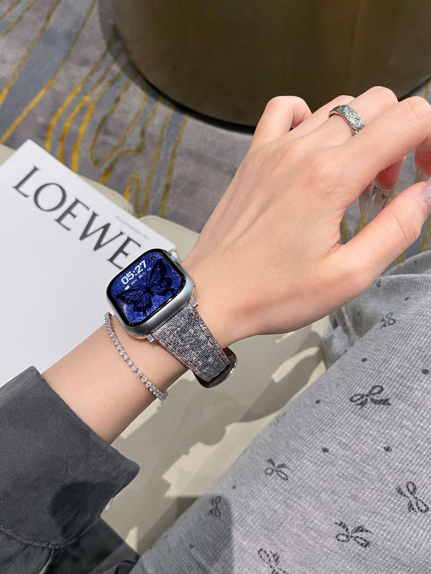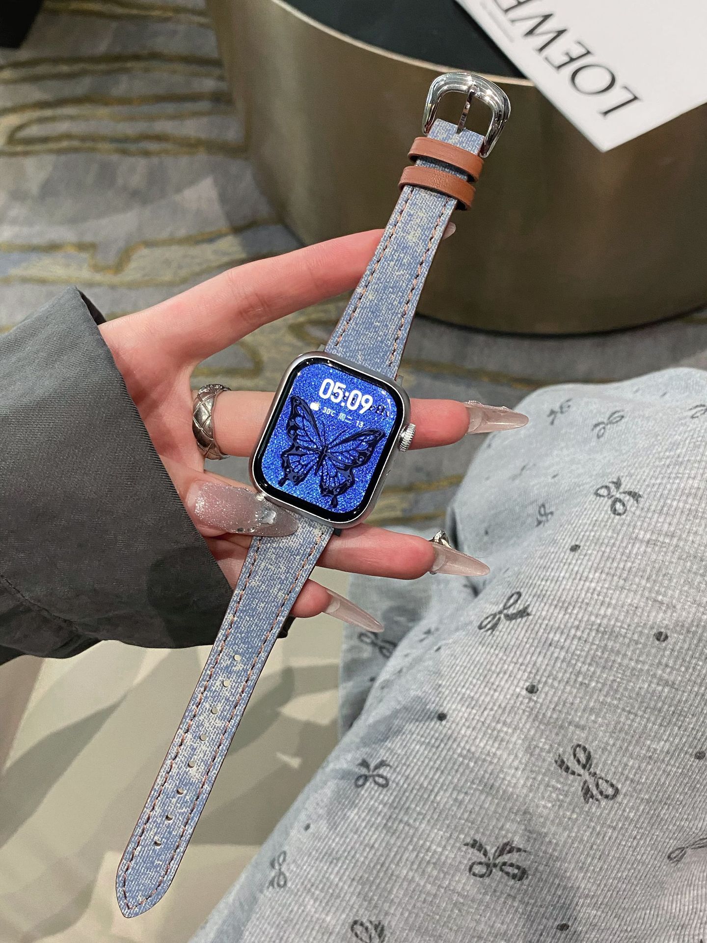 Pulseira de Cintura Pequena em Couro Denim para Applewatch Apple Watch iwatch98 Geração 7654SE