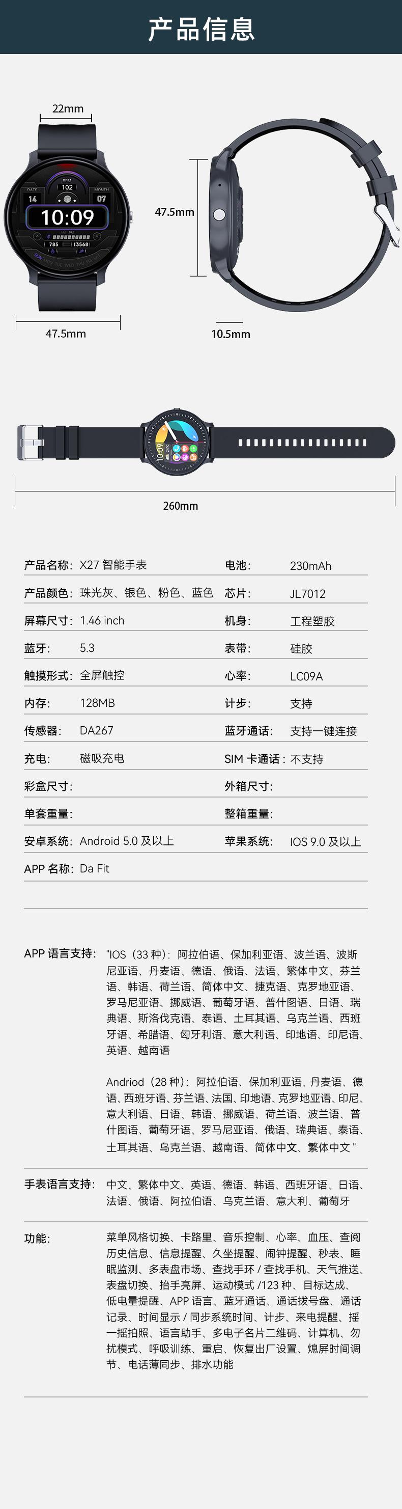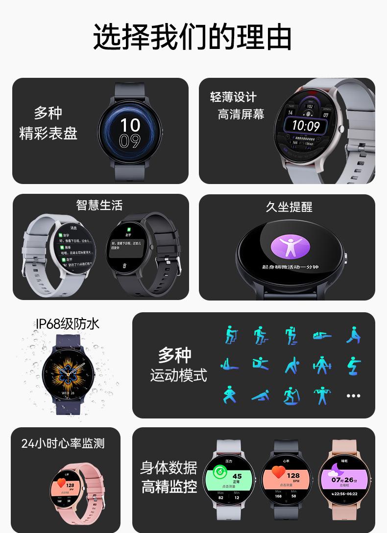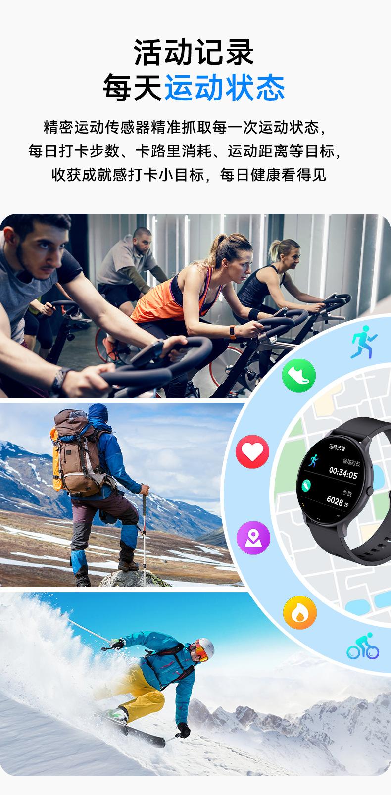 Step counting, Heart rate monitoring, Social Entertainment, Bluetooth call, Smart Reminder, Remote control sel...