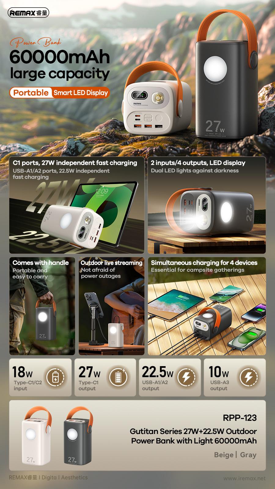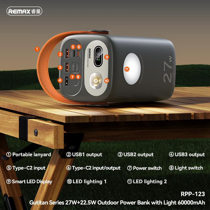 Remax Grande Capacidade 60000 Mah Luz Led Outdoor Fonte de Alimentação Móvel 27W Carregamento Rápido Power Bank Presente