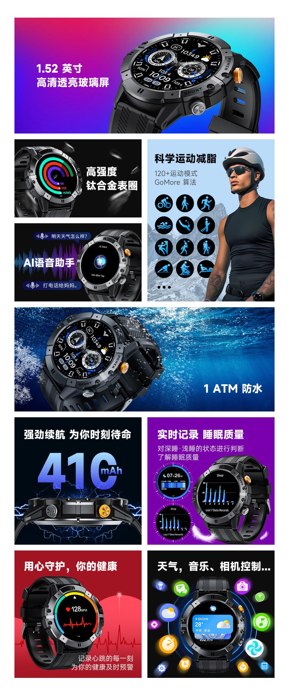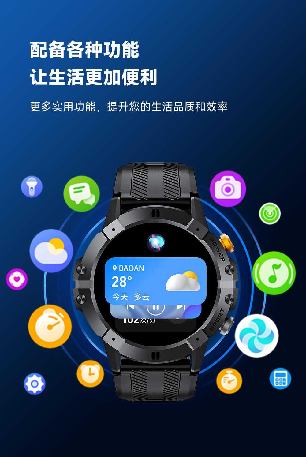 Waterproof, Take pictures, Step counting, Heart rate monitoring, Blood pressure measurement, Social entertainm...