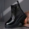 Zíper lateral Martin botas masculinas forradas de lã Botas de motocicleta de couro britânico com ferramentas de inverno altura crescente de cano médio Chelsea botas curtas