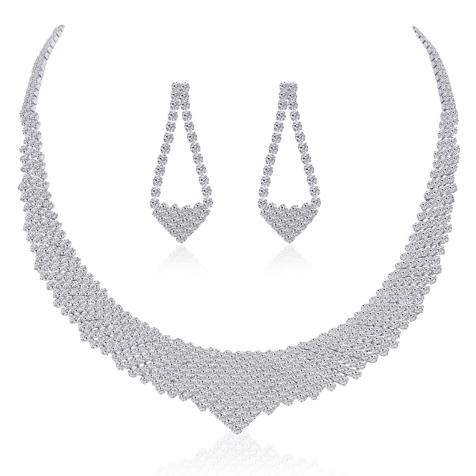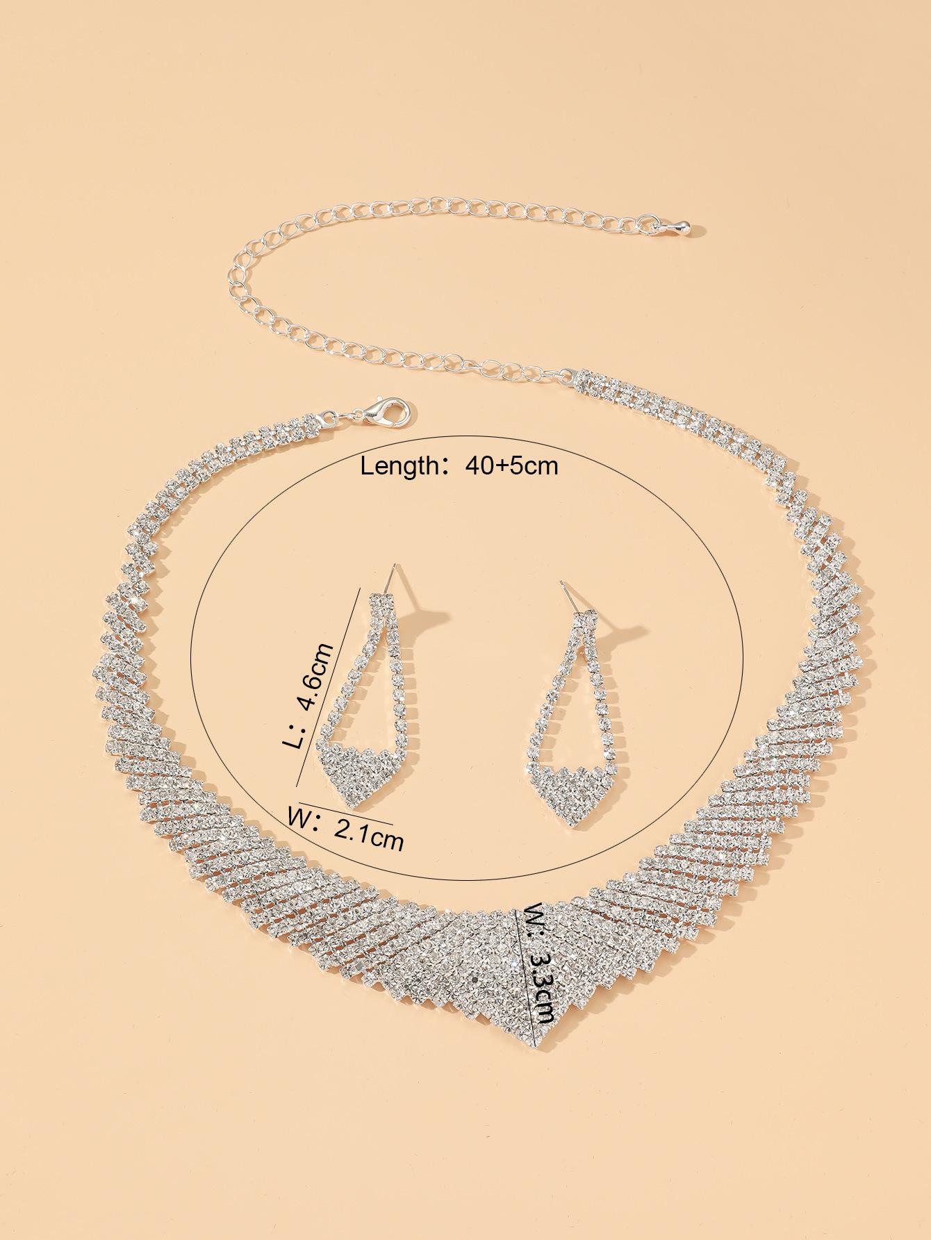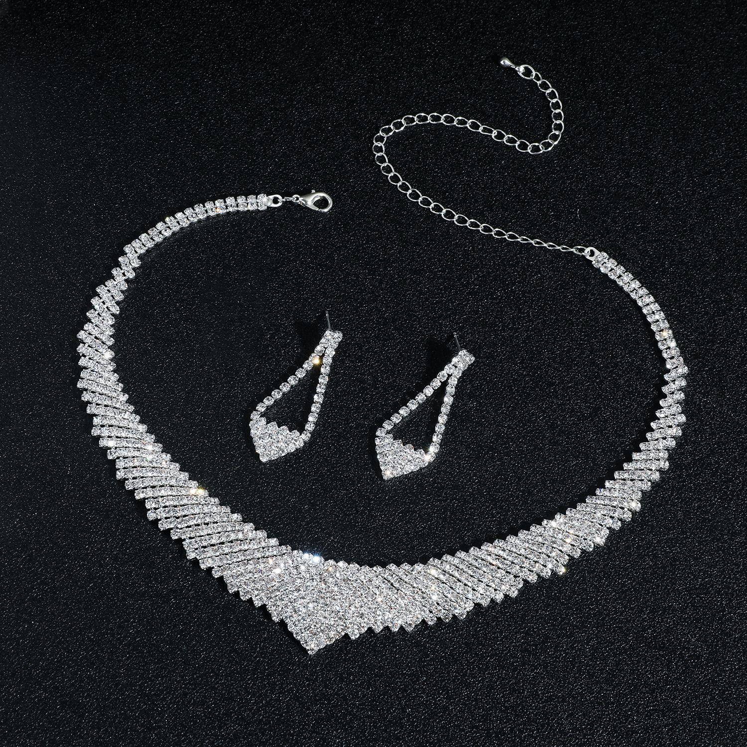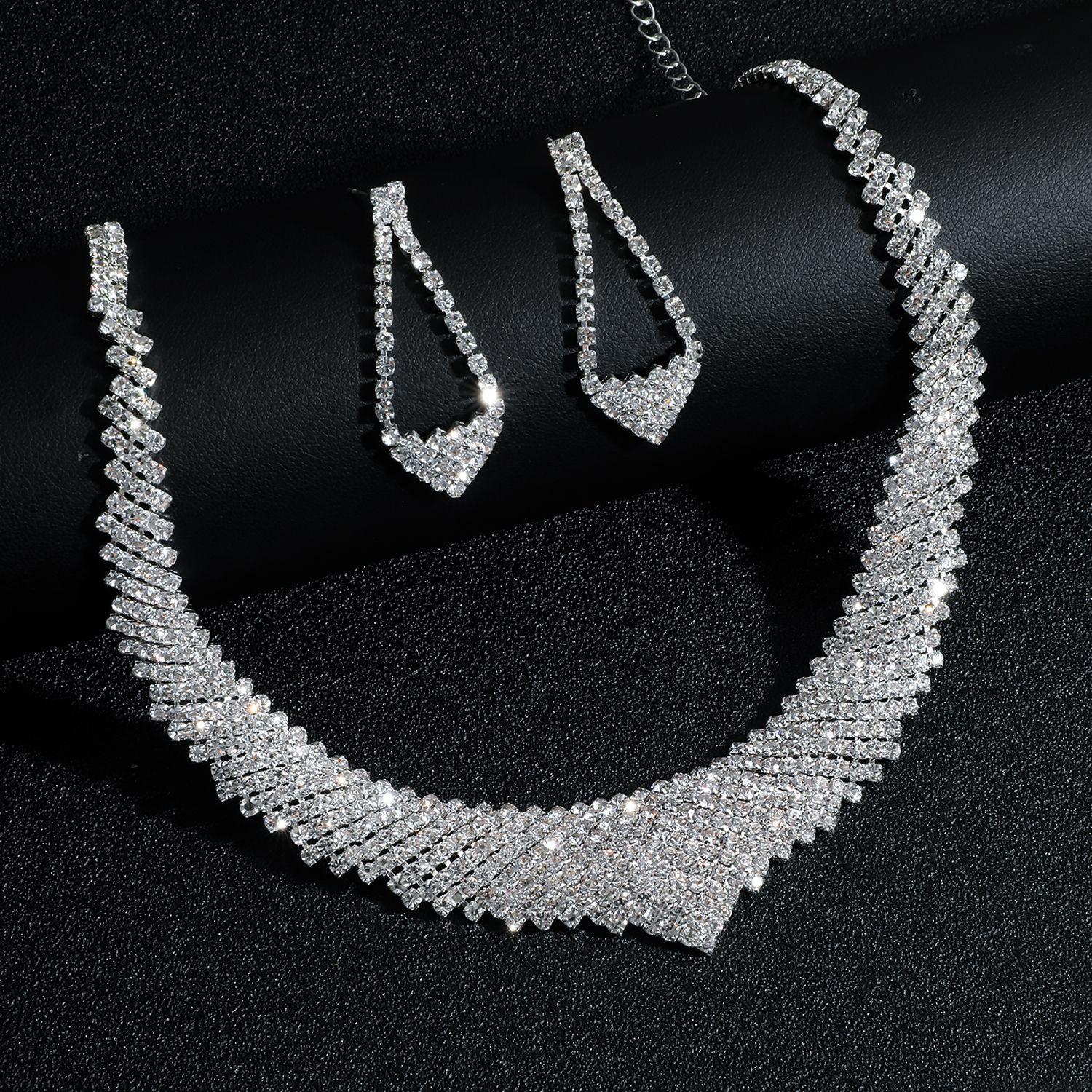 Conjunto de Joias Simples para Casamento Novo Europeu e Americano Conjunto de Strass para Noiva Colar de Corrente Conjunto de Brincos Joias Conjunto de Duas Peças