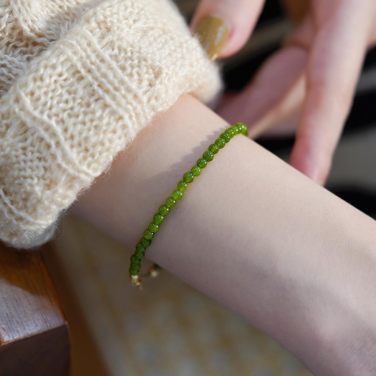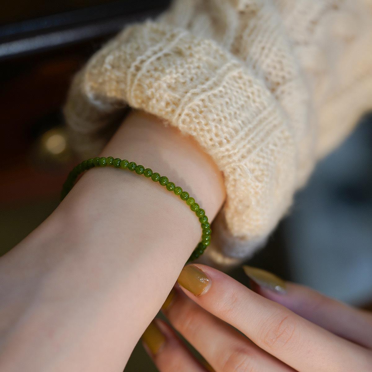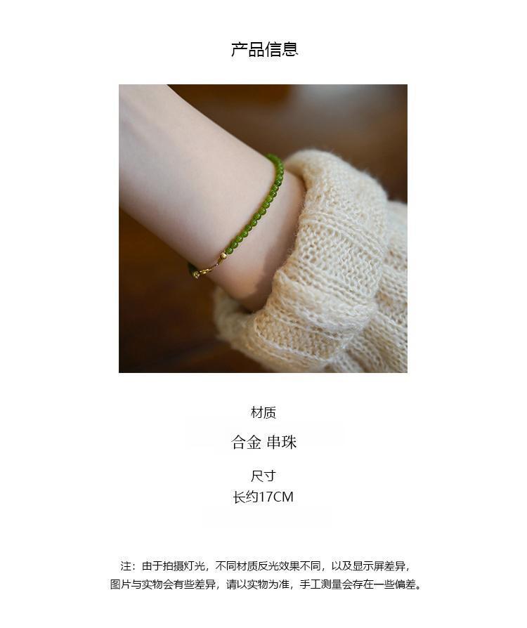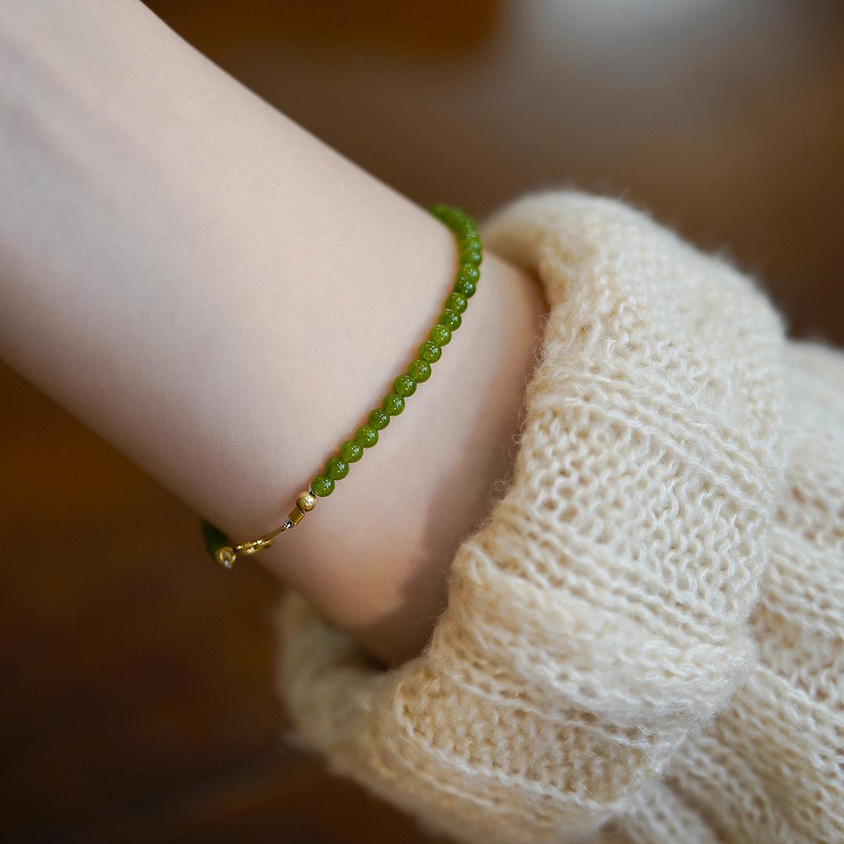 Pulseira de contas verdes, leve, luxo, nicho, pulseira requintada, design de nicho feminino, pulseira all-match