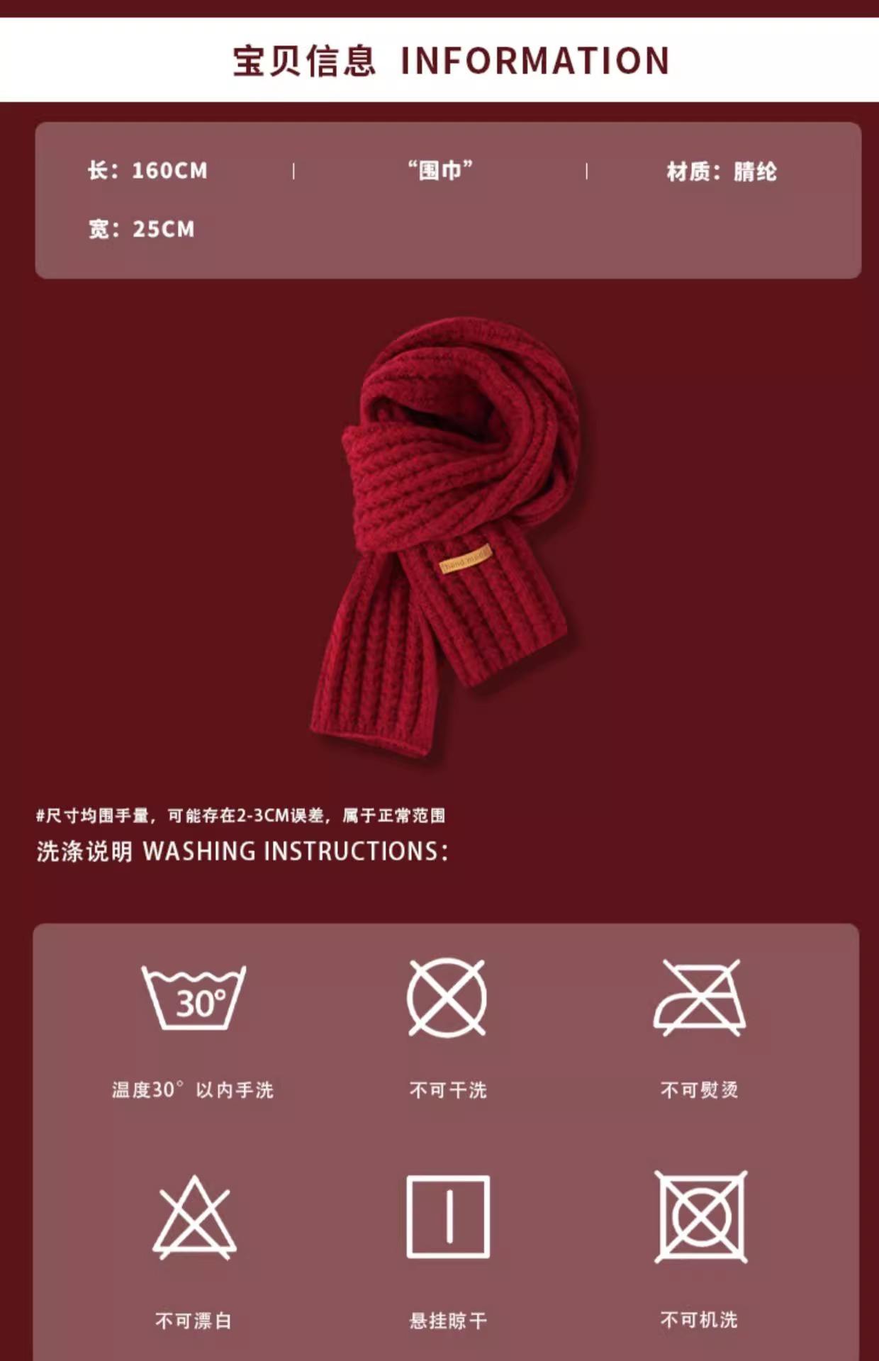 Compre Cachecol vermelho de lã tricotada estilo coreano feminino inverno 2024 novo cachecol de casal de alta qualidade e manutenção de calor para estudantes no atacado no Joom.pro