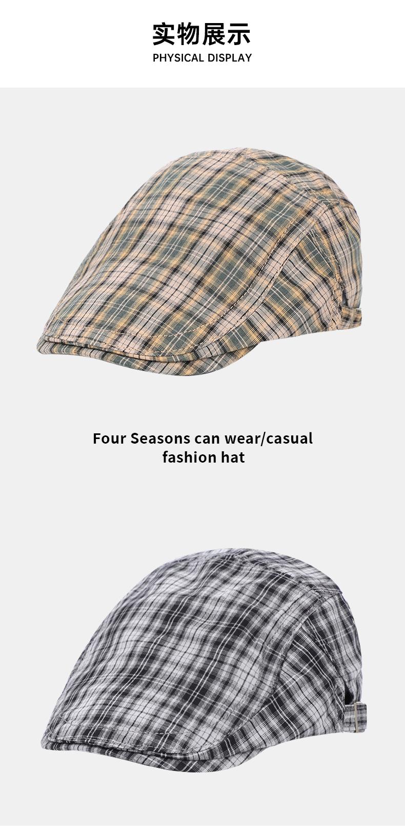 Primavera e Verão Xadrez Artístico Retro Chapéu de Sol Masculino e Feminino Boina Fina Casual Trendy Forward Chapéu