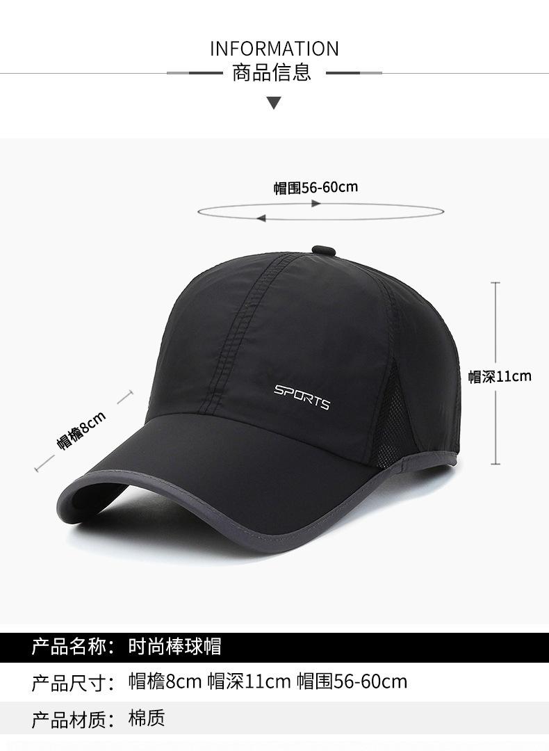 Chapéu Verão Boné de beisebol masculino Chapéu de sol fino Moda simples Corrida Chapéu de secagem rápida Boné ao ar livre Moderno