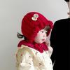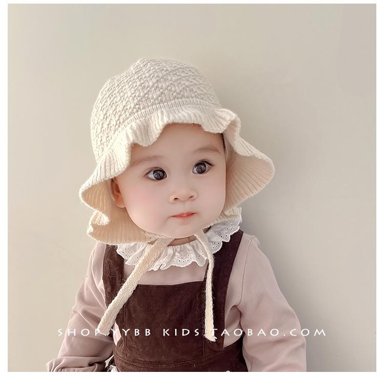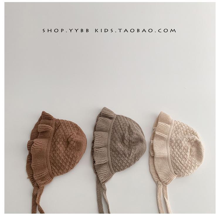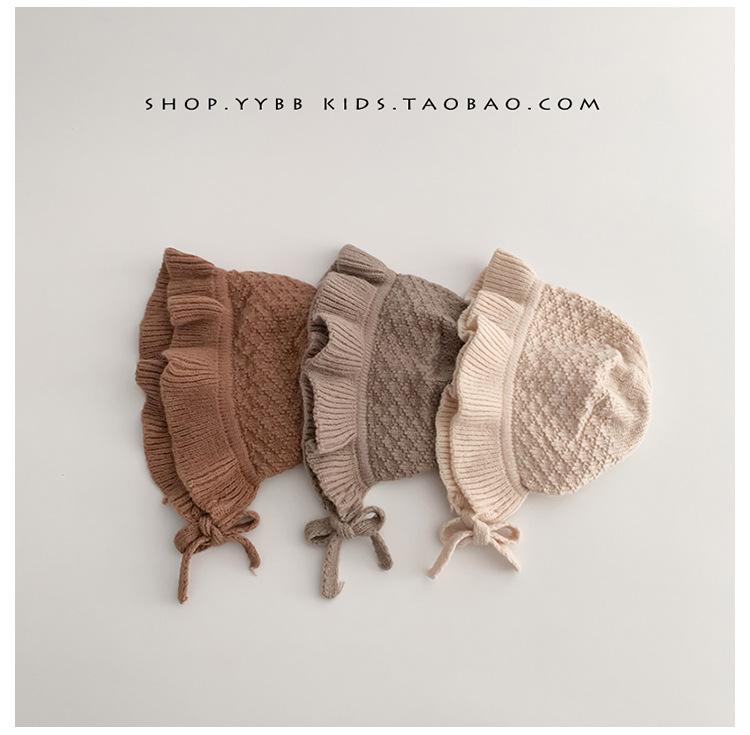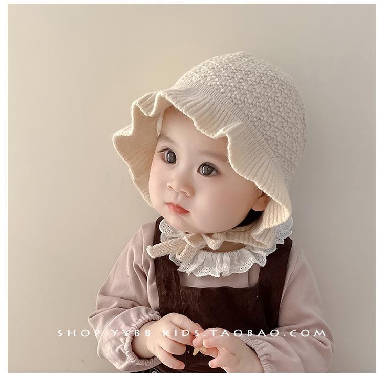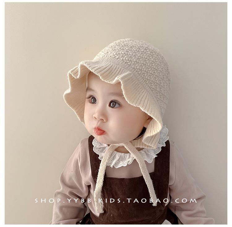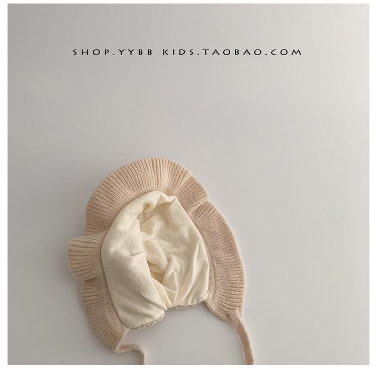 Chapéu de proteção para os ouvidos do bebê outono e inverno engrossado forrado com babados princesa chapéu bebê menina ao ar livre quente malha lã chapéu