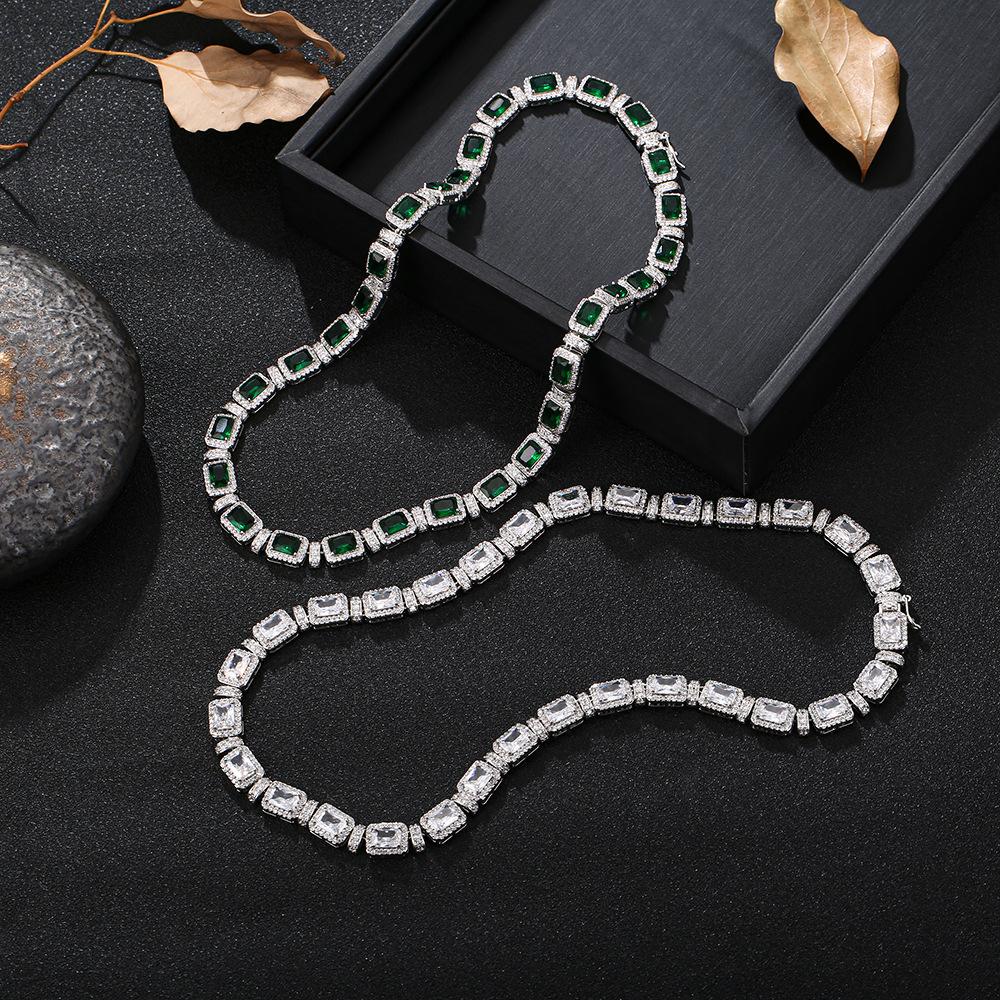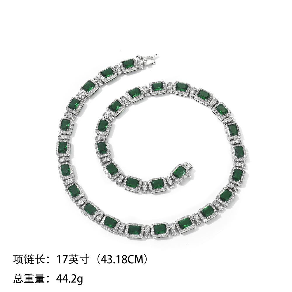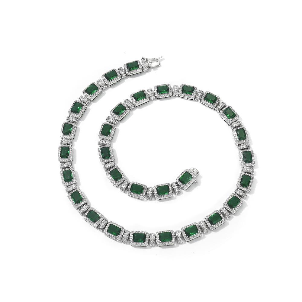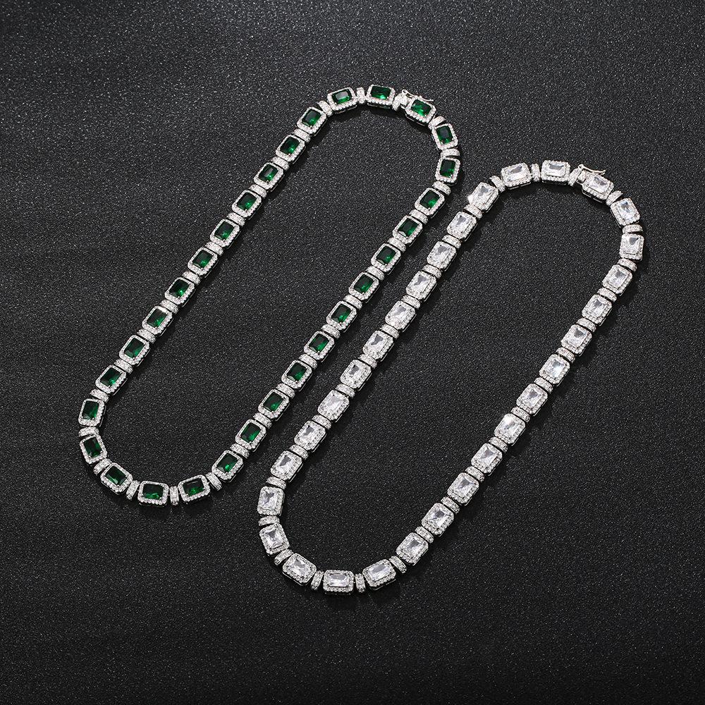 Corrente de tênis REESA Esmeralda Zircão 9mm Corrente de fileira única Hip Hop Estilo Europeu e Americano Luxo Casal Homens e Mulheres Colar