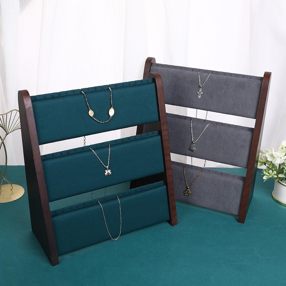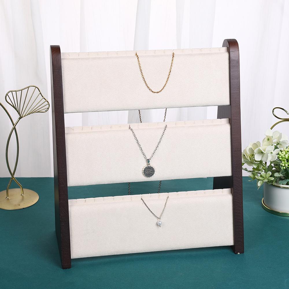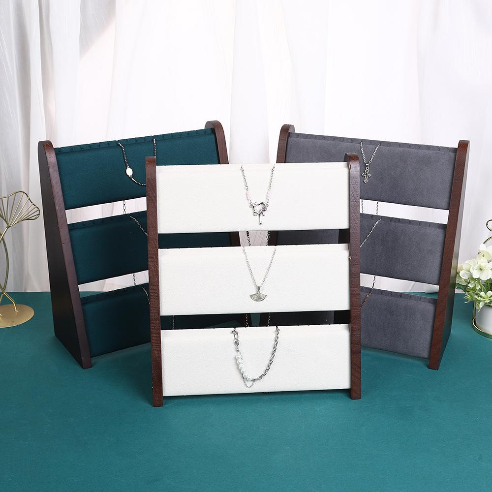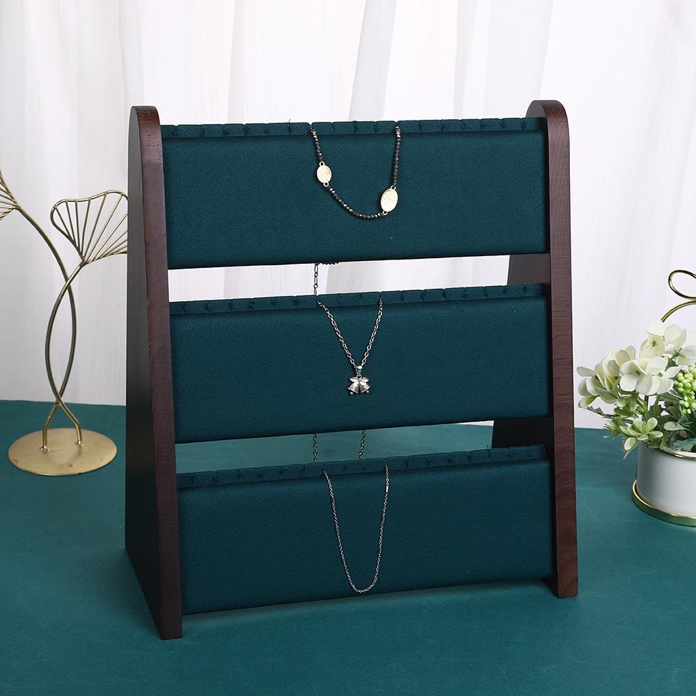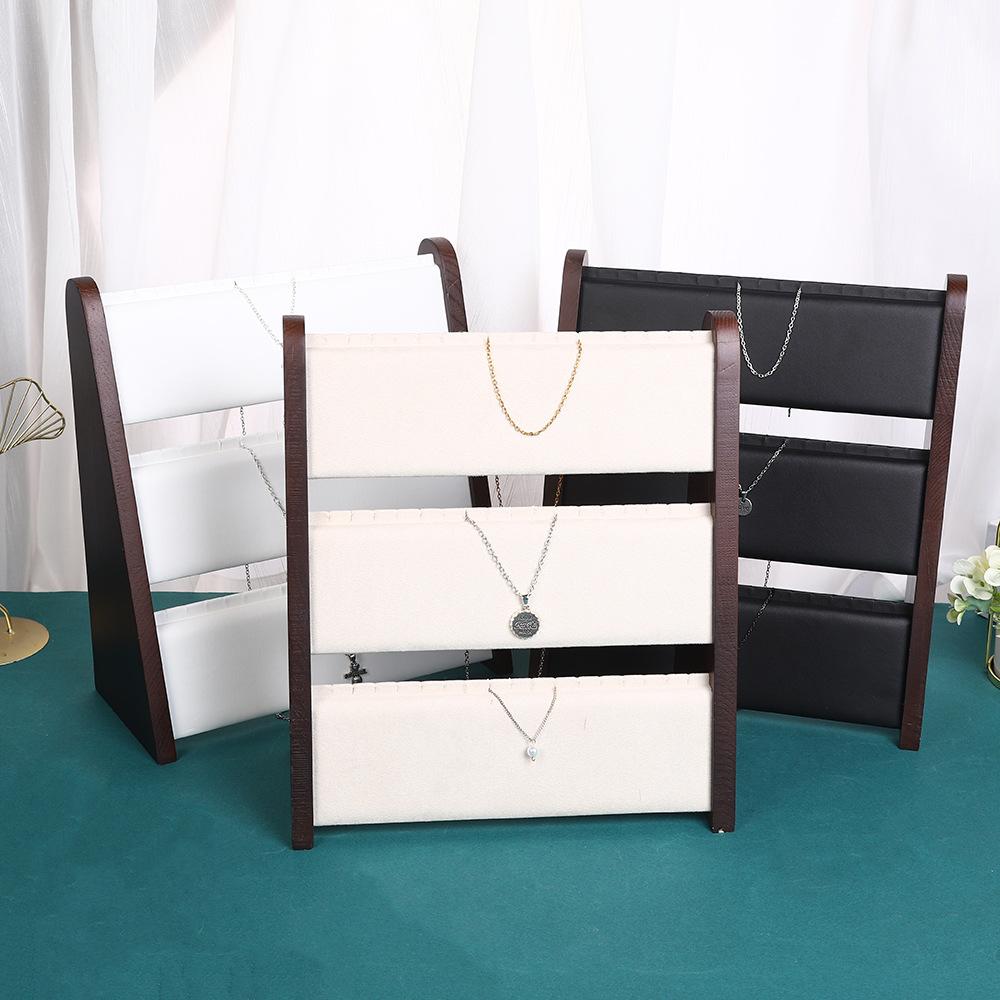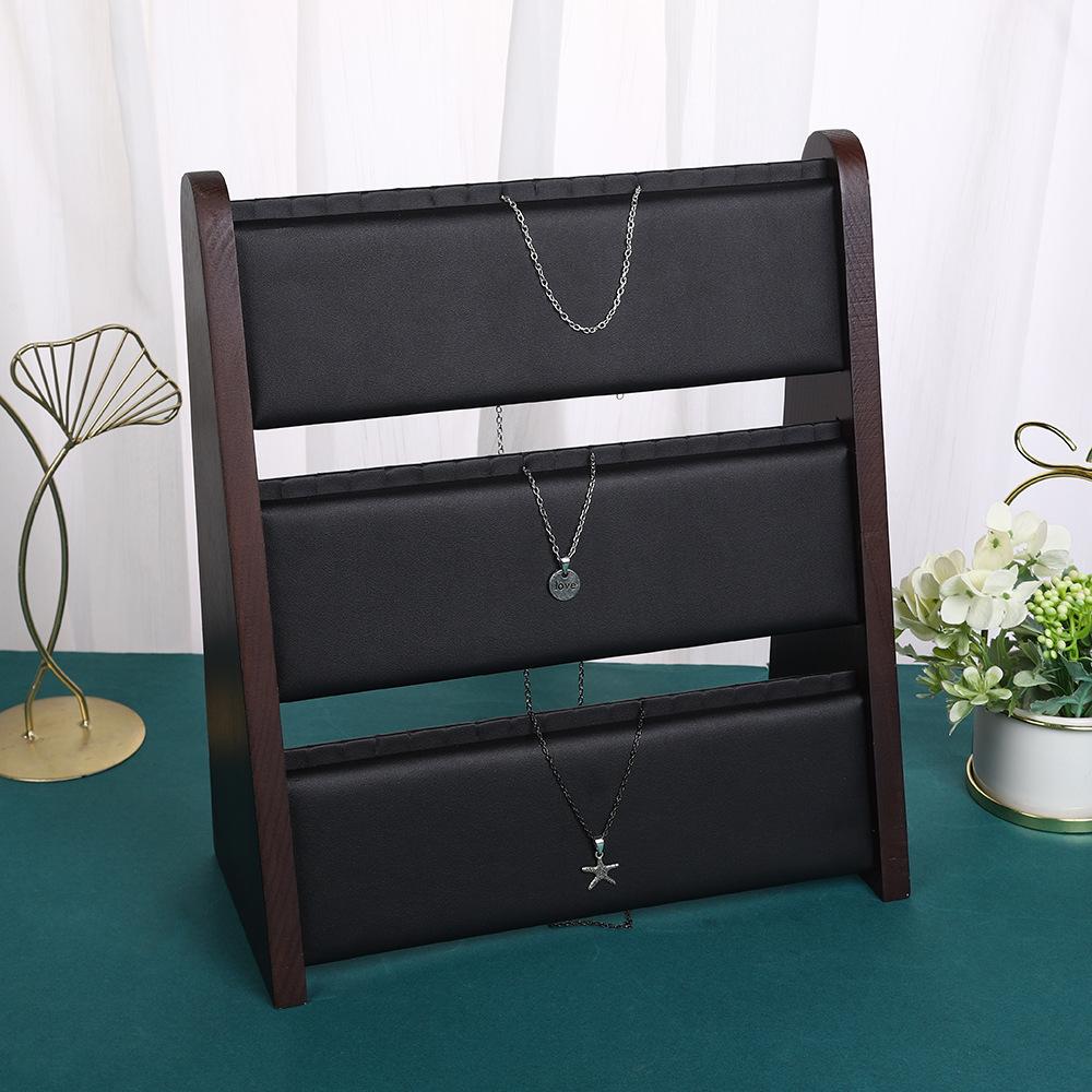 Black Walnut Color Three-layer Necklace Rack Black Leather